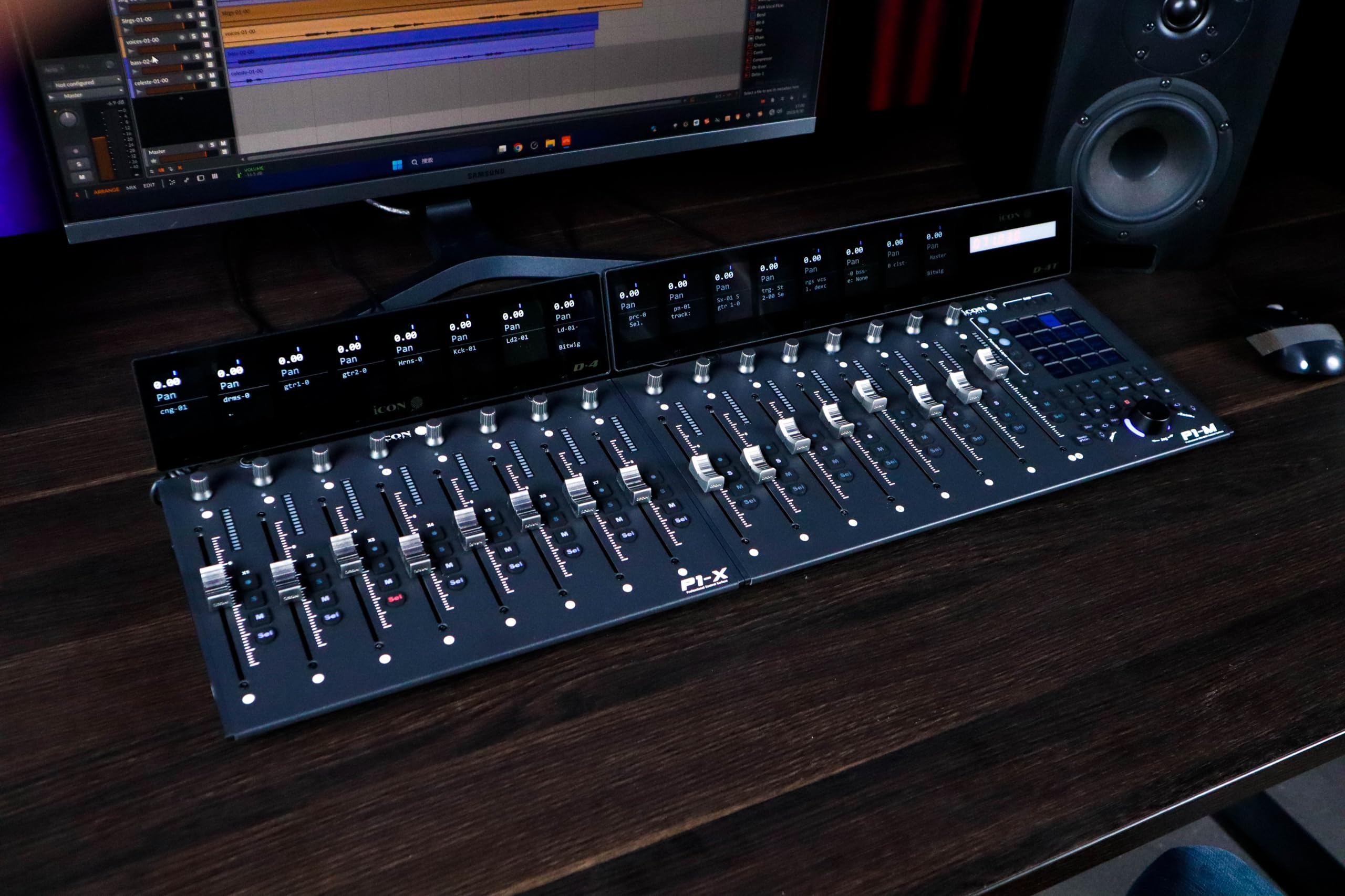 1. Desbloquea el potencial de tu sistema de producción con el iCON Pro Audio P1-X Extender, diseñado para expandir las capacidades del controlador DAW MIDI P1-M. Este extensor agrega ocho faders motorizados sensibles al tacto y ocho perillas de encoder de doble función para un control preciso sobre tu estación de trabajo de audio digital . Los botones iluminados de mute, solo, select y record pueden ser personalizados para adaptarse a tus necesidades, mientras que la pantalla OLED D4 muestra información esencial del canal.