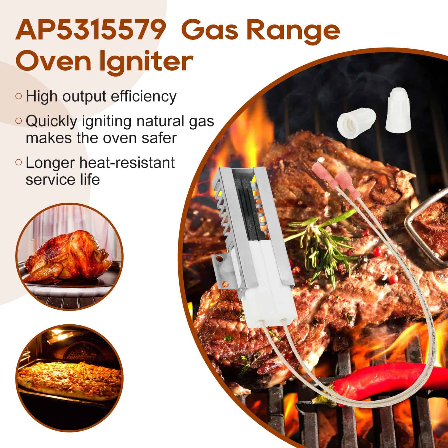 4. Seguro y eficiente: El encendedor de horno de gas AP5315579 utiliza cerámica y acero inoxidable para proteger los componentes de calentamiento internos, haciendo que el encendedor sea más duradero y eficiente.