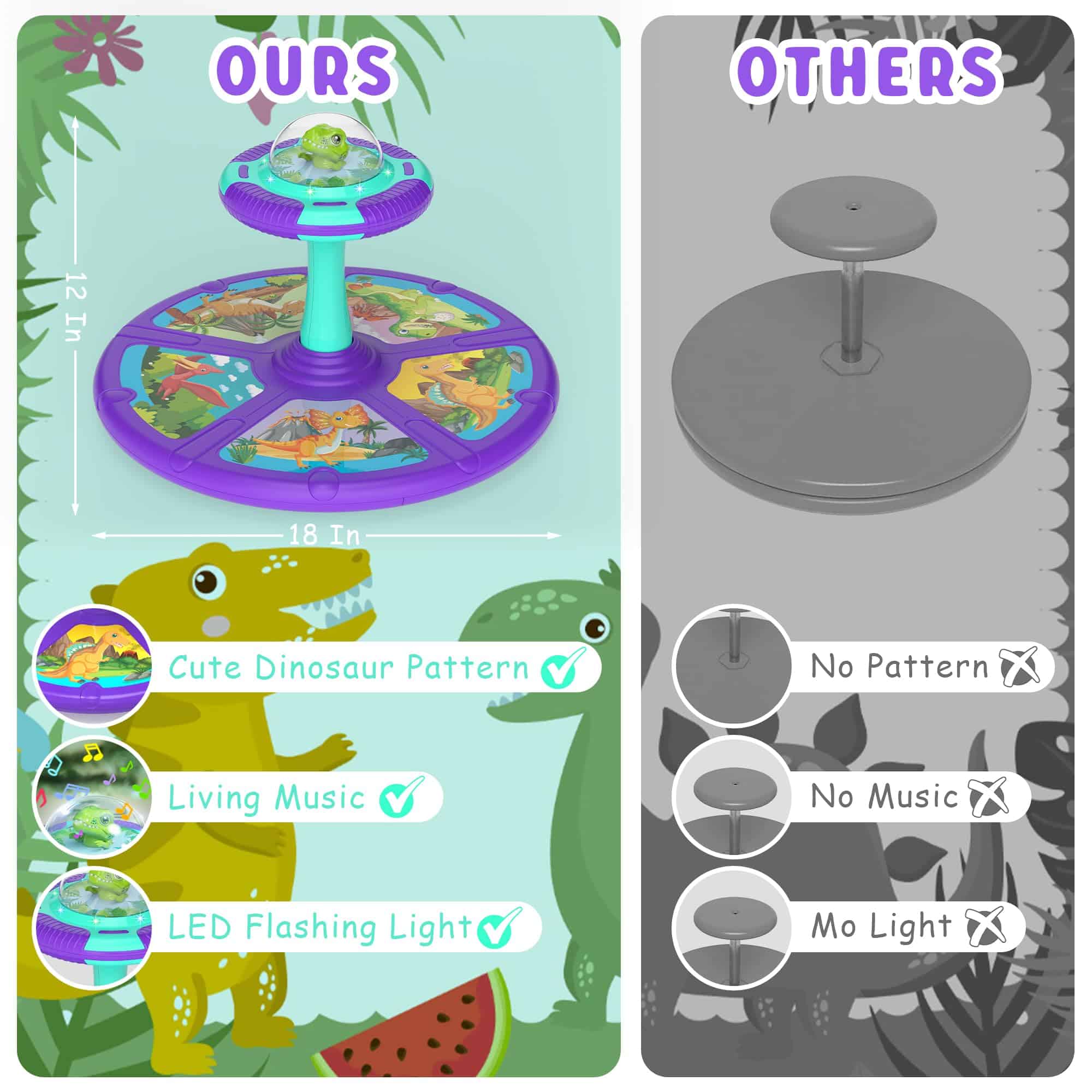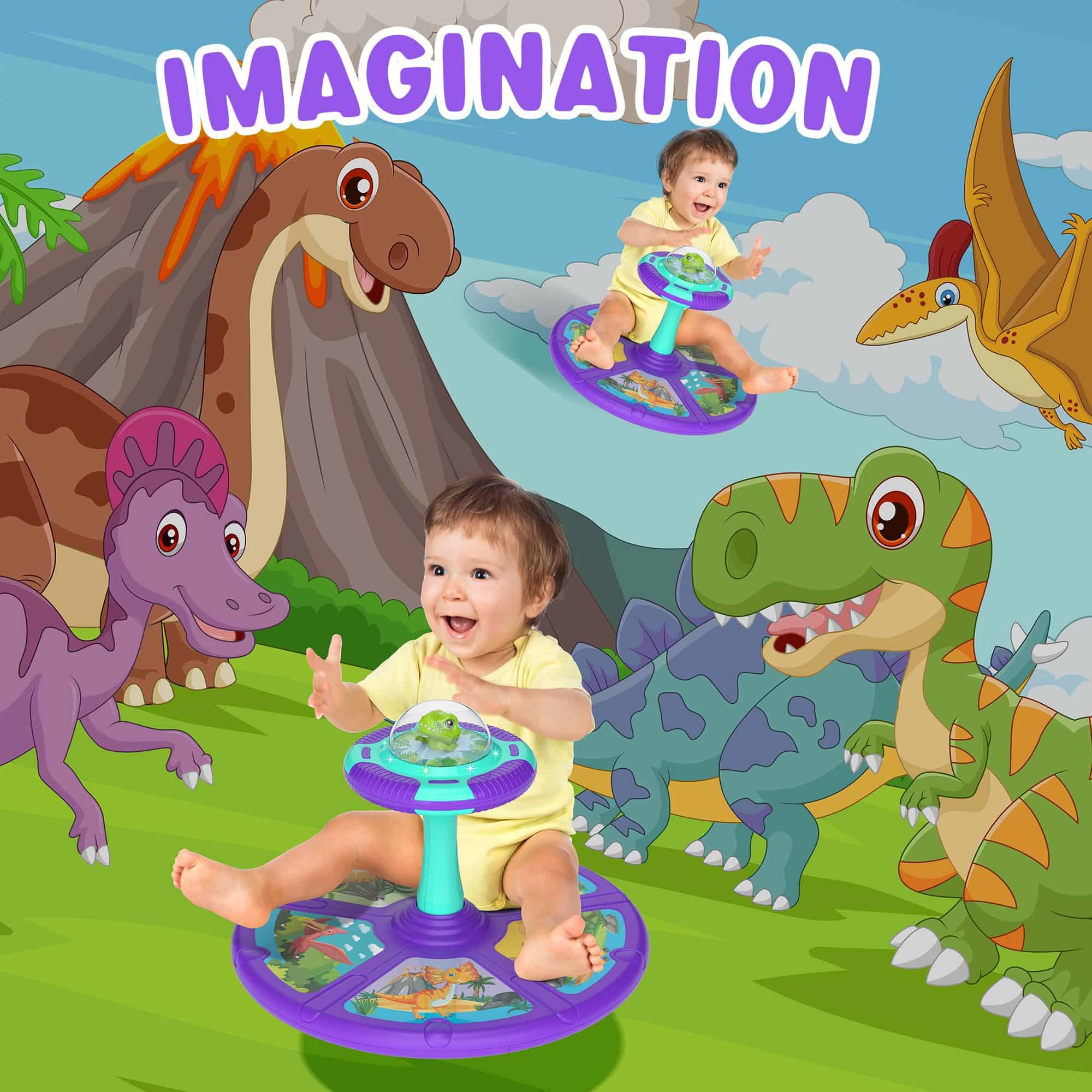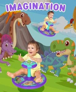 Recomendado para el crecimiento alegre de los niños de 18 meses a 5 años. El juguete giratorio de dinosaurio es el regalo de cumpleaños perfecto para mejorar las habilidades motoras de los niños. Ayuda a cultivar el equilibrio, la dirección y las habilidades de coordinación del bebé,