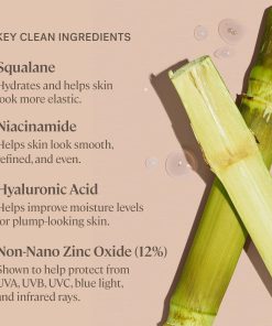 Esta Limpiadora Tintada combina Maquillaje, Cuidado de la Piel y SPF en un solo paso. Con cada uso, los activos del cuidado de la piel hidratan, suavizan y refinan visiblemente la piel desnuda. El óxido de zinc no nano protege la piel de los rayos UVA/UVB/UVC, de la luz azul y de la contaminación. La niacinamida ayuda a suavizar la textura de la piel y a refinar el tono desigual. El ácido hialurónico ayuda a rellenar la piel y a reponer los niveles de humedad, y el escualano de origen vegetal ayuda a hidratar y mejorar la elasticidad sin obstruir los poros. ¡El Serum Super Tintado para la Piel ahora está clínicamente probado para mejorar y proteger la piel! El 100% dijo que la hidratación aumentó, el 94% vio una mejora en las imperfecciones, en el enrojecimiento y en el tono desigual, y el 90% dijo que las arrugas y las líneas finas se redujeron. Calidad limpia: vegano, libre de crueldad, libre de silicona, libre de fragancias, libre de aceites y no comedogénico. Seguro para pieles sensibles y probado por dermatólogos.