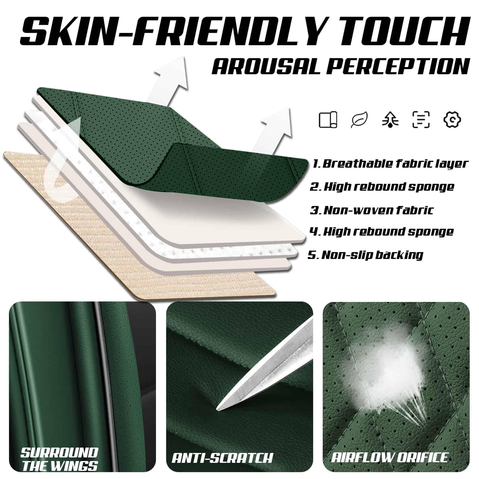 2. Cómodas Fundas de asiento de coche ILMO antideslizantes están hechas de cuero Napa de alta calidad, que se siente suave y delicado, como si tocara seda. La textura natural de la superficie de la funda de asiento del automóvil y el diseño coloidal inferior, proporcionan doble seguridad y antideslizante. Ya sea en el traslado a la ciudad o en un viaje largo, es bueno conducir de manera segura y aliviar la fatiga.
