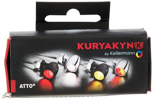 No dejes que el tamaño diminuto de la colección de iluminación para motocicleta Kuryakyn 2575 Kellermann Atto te engañe. Estas potencias diminutas compensan su pequeña estatura con un brillo que llama la atención. Presenta la tecnología LED de alta potencia de Kellermann con Long Life Protection Guard para ofrecer una vida útil máxima y un brillo espectacular. IC (circuito integrado) controlado, 330 kHz, para una vida útil y brillo LED máximo, con un mínimo consumo de energía. Iluminación aprobada por la Comisión Económica de Europa (CEE), con carcasa de metal de alta calidad. Incluye (1) conjunto de iluminación roja con carcasa negra satinada para aplicaciones traseras; puede funcionar como luz de día/freno, luz de día/dirección o luz de día/dirección/freno dependiendo de la motocicleta con configuración de 3 cables y lente claro. La colección de iluminación para motocicleta Kuryakyn 2575 Kellermann Atto es de ajuste universal para la mayoría de las aplicaciones de 12 Voltios CC con rosca de montaje M5 x 0.5 x 6.5mm (no cumple con DOT/FMVSS 108); medidas de 10 mm de diámetro x 14 mm de longitud con lente de 7.8 mm.