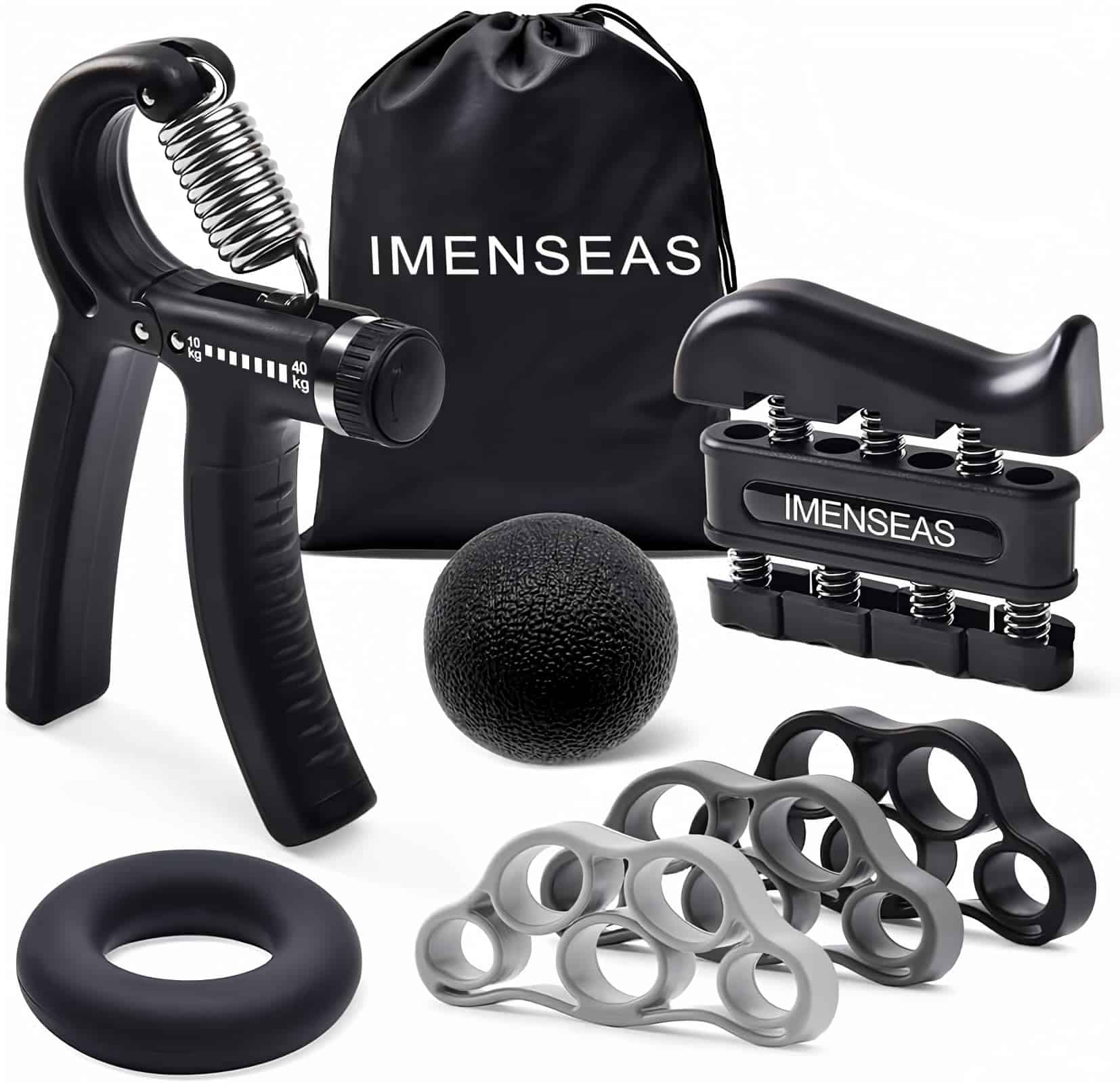 El Entrenador para Fortalecimiento de Agarre IMENSEAS 7 Pack Ajustable es el compañero perfecto para mejorar la fuerza en tus manos y dedos. Incluye una variedad de herramientas de resistencia para desarrollar la fuerza en los músculos de la mano y dedos, lo cual es beneficioso para atletas, músicos y personas en rehabilitación.