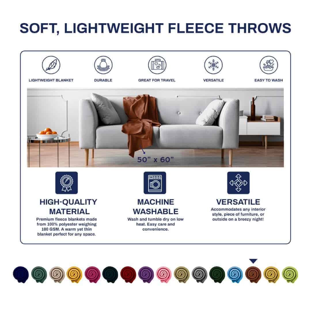 ¡Nuestra manta de forro polar suave es la manta ligera que has estado buscando! Hecha de 100% poliéster y forro polar de 180 GSM, esta es una manta cálida pero delgada que puedes usar como manta de viaje, manta de sofá, manta de cama, manta de forro polar de otoño, manta para tu hogar, oficina, etc., ¡donde sea que necesites un poco de calor extra! La manta de viaje de forro polar mide 50 x 60 pulgadas y se puede lavar a máquina. Paquete de 12 (Marrón)