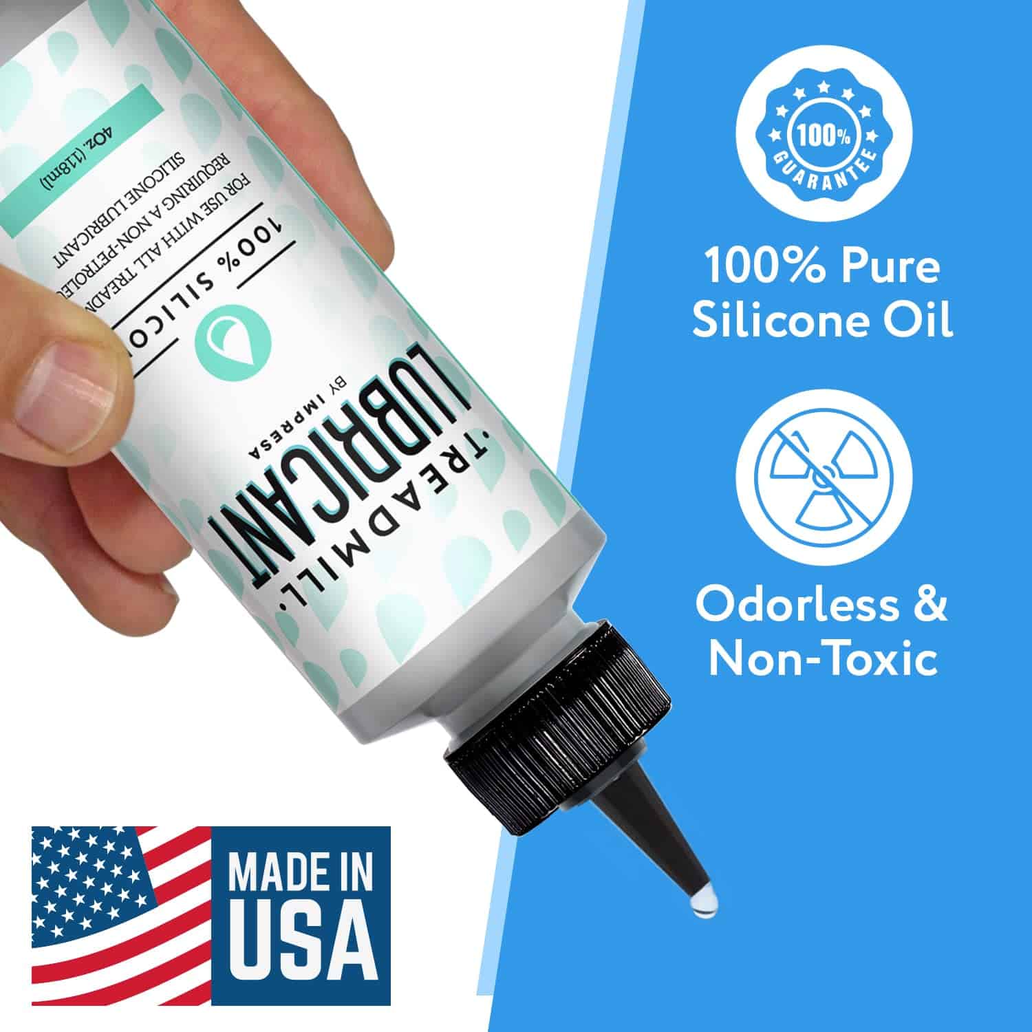 Impresa Pack de 2 de Lubricante de Silicona para Cintas de Caminar – Fácil de Aplicar – Hecho en EE. UU. – Lubricante para Cintas de Caminar. 100% Silicona Hecho en EE. UU., Ideal Para Una Amplia Gama de Cintas de Caminar: Lubricante de cinta de caminar de silicona al 100%, formulado a medida para una variedad de cintas de caminar (domésticas/personales, comerciales/gimnasios, compactas, plegables, etc.). ¡El lubricante de cinta de caminar / aceite de cinta de caminar que necesitas! Fácil de Aplicar: Paquete de 2 botellas de 4 oz de fácil aplicación con tapa giratoria de precisión simplifica el proceso de aplicación para tu cinta / plataforma; ya sea que lo llames lubricante, grasa, aceite, líquido, spray o gel, este producto sin olor es el lubricante de cinta de caminar más fácil de aplicar – No se necesita una punta aplicadora adicional. Ayuda a Mantener Tu Máquina Funcionando Suave y Silenciosamente: La lubricación adecuada de la cinta de caminar reduce el ruido, elimina la vacilación de la correa de la cinta y prolonga significativamente la vida útil del motor de tu cinta de caminar; haz que tu cinta de caminar sea más silenciosa y reduce la necesidad de mantenimiento/reparaciones con nuestro lubricante de silicona para cintas de caminar. Compatible con Prácticamente Todas las Marcas: Lubricante de Silicona para Cintas de Caminar Para NordicTrack, Sole, ProForm, Horizon, Weslo, True, Life Fitness, Nautilus, Epic, Landice, LifeSpan, New Balance, PaceMaster, Precor, Smooth, Spirit, Vision, Fuel, Lifestyler, Sportcraft, Star Trac, Woodway, Schwinn, y más. También es ideal para muchas marcas de elípticas. Este es un lubricante a base de líquido, no de cera.