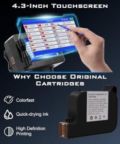 1. Operación portátil todo en uno. La portabilidad combinada con el control táctil de 4.3» permite la edición de códigos de barras/fechas/códigos QR, etc. directamente en la impresora (no se requiere aplicación/PC). El sistema integrado de la impresora de mano admite 28 idiomas y la batería de 2600mAh permite hasta 8 horas de impresión continua en almacenes/exterior.
