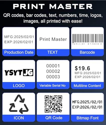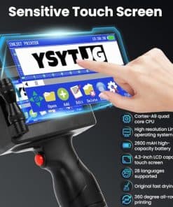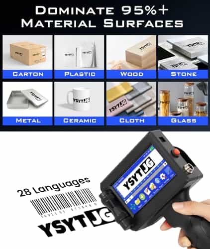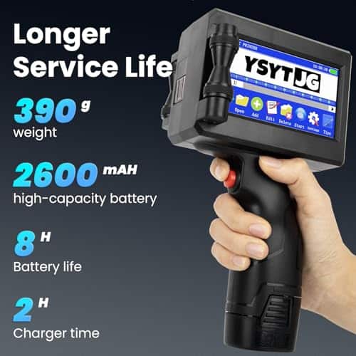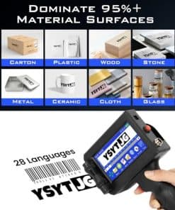 3. Impresora maestra, múltiples capacidades de impresión. La impresora de inyección de tinta portátil YSYTJG satisface diferentes necesidades de impresión, incluyendo la impresión de texto, números, símbolos, números de serie, códigos 2D, códigos de barras, hora, etiquetas, fechas, etiquetas de precio y fechas de caducidad, así como imágenes y logotipos a través de la unidad flash USB incluida. ¡Es tu solución de impresión definitiva! Equipado con 42 ml de tinta de secado rápido para impresión sin manchas en todas las superficies en menos de 3 segundos.