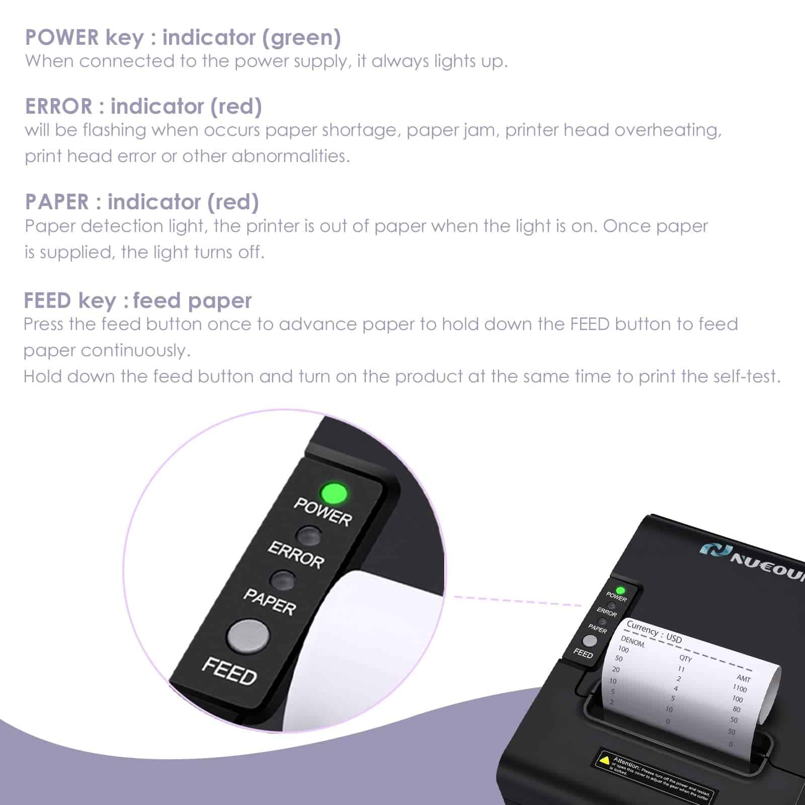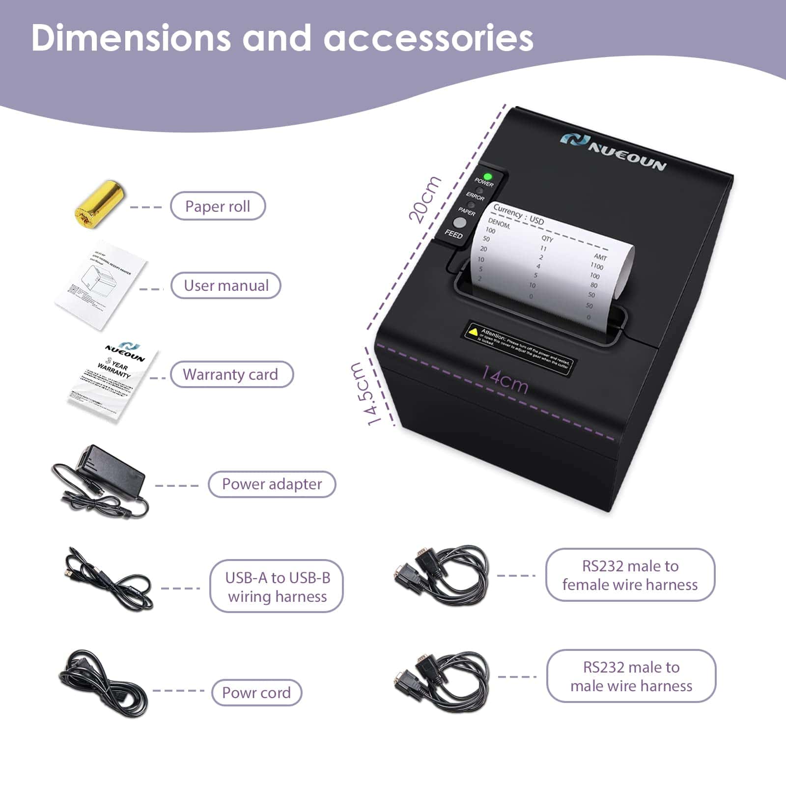 Impresora de recibos térmica NUCOUN VCP-80 de 80 mm,