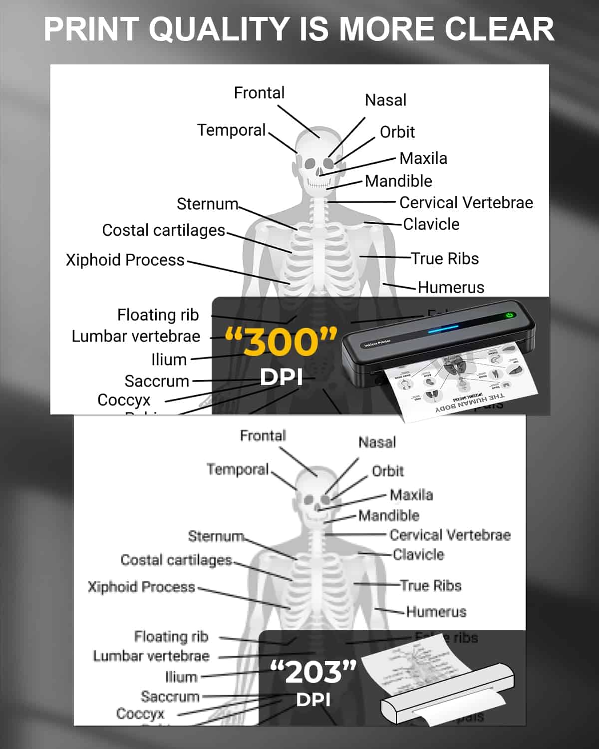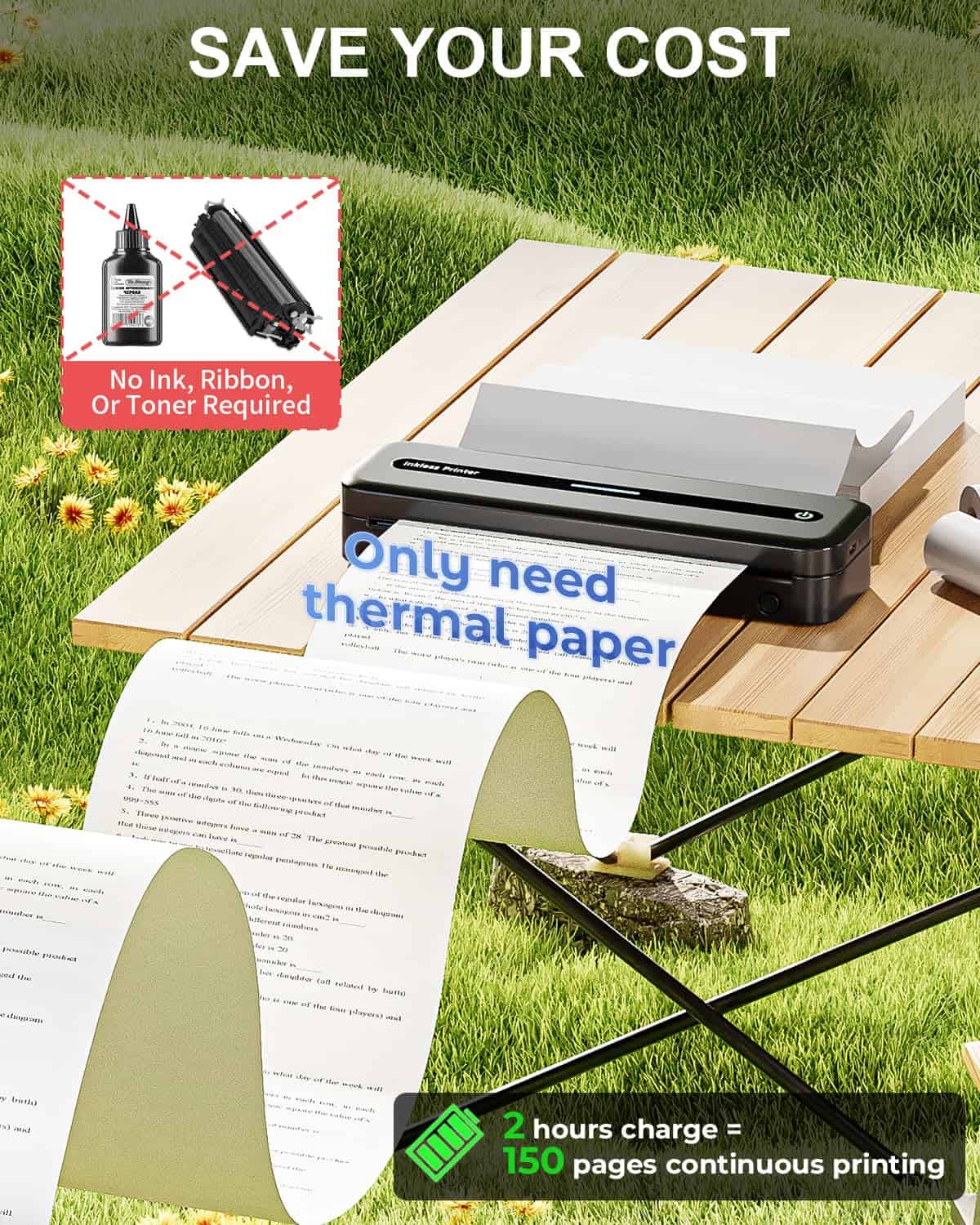 Impresora portátil inalámbrica COLORWING M832 para viajes, mini impresora compacta de 300DPI que ofrece una claridad excepcional. Con esta impresora térmica Bluetooth, podrás imprimir de forma sencilla y rápida desde tu computadora, teléfono o tableta. Con un peso de solo 1.5 lb y dimensiones similares a un estuche para lápices, es fácil de transportar y perfecta para llevarla contigo a donde vayas. Impresión inalámbrica desde tu teléfono o tableta a través de Bluetooth, compatible con sistemas iOS y Android. Para computadoras, solo conecta el USB. Esta impresora compacta no requiere tinta, cinta o tóner, lo que te permite ahorrar dinero y tiempo. Simplemente usa papel térmico y disfruta de impresiones limpias y nítidas. La impresora térmica inalámbrica de COLORWING M832 cuenta con una resolución de 300DPI, lo que garantiza impresiones más nítidas y claras que la mayoría de las mini impresoras térmicas del mercado que tienen una resolución de 203DPI. Con soporte para varios tamaños de papel, rollo, papel plano y etiquetas térmicas, esta impresora inalámbrica portátil es versátil y cubre todas tus necesidades de impresión. Además, cuenta con certificación FCC para garantizar tu privacidad y seguridad. El equipo de COLORWING está siempre disponible para brindarte ayuda remota, garantizando una experiencia de impresión sin complicaciones.