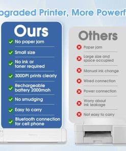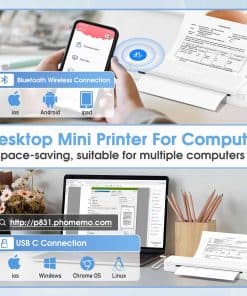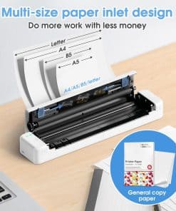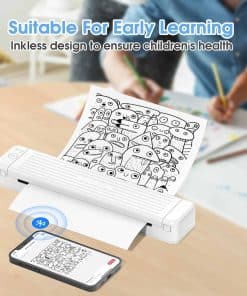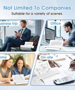 Impresora térmica Bluetooth P831 que pesa 1.7 libras (0.77 kg) para una alta portabilidad. Su tamaño compacto es similar a la longitud del antebrazo de un adulto, lo que le permite imprimir en el momento y lugar que desee, ya sea viajando por negocios o placer, en la oficina, en casa, en el coche o en la universidad. Admite impresión a doble cara para reducir costos de papel. Además, cuenta con un tope incorporado que ajusta el ancho de la ranura del papel, lo que permite una impresión flexible en anchos de papel de 8.5″ (Carta estadounidense), 8″ (A4), 7″ (B5) y 5.8″ (A5). Conexión fácil a dispositivos iOS y Android a través de Bluetooth o a su computadora mediante un cable USB para imprimir. Ideal para uso en el hogar, pequeña oficina, escuela o exteriores. La aplicación de la impresora sin tinta contiene una función de escaneo que le permite tomar fotos de objetos reales, digitalizarlos y luego borrar cualquier contenido no deseado. También puede editar y reimprimir las imágenes según sea necesario para crear versiones corregidas de materiales impresos.