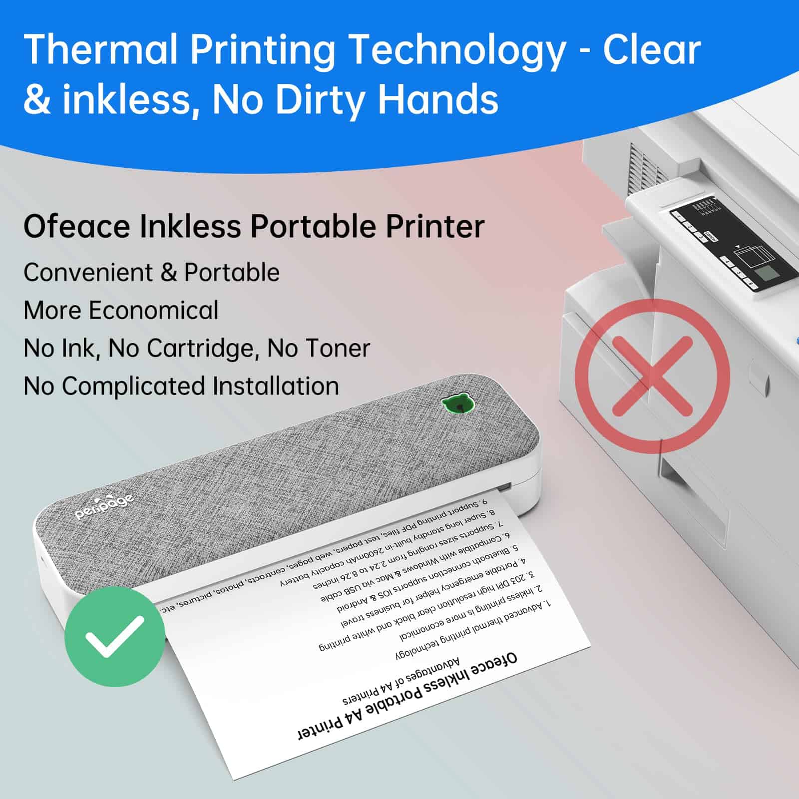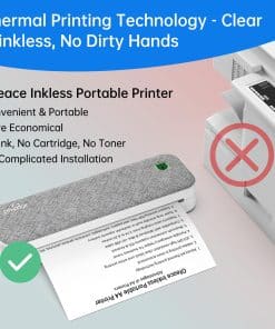 4. Más Económica La impresora portátil utiliza tecnología de impresión térmica avanzada sin el costo de tinta, tóner y cinta de las impresoras tradicionales, y viene con un rollo de papel térmico A4, ahorrándote al menos un 50% de dinero. Ahorro energético y ambiental, ¡cada vez que imprimes estás ayudando a la causa de la protección ambiental!.