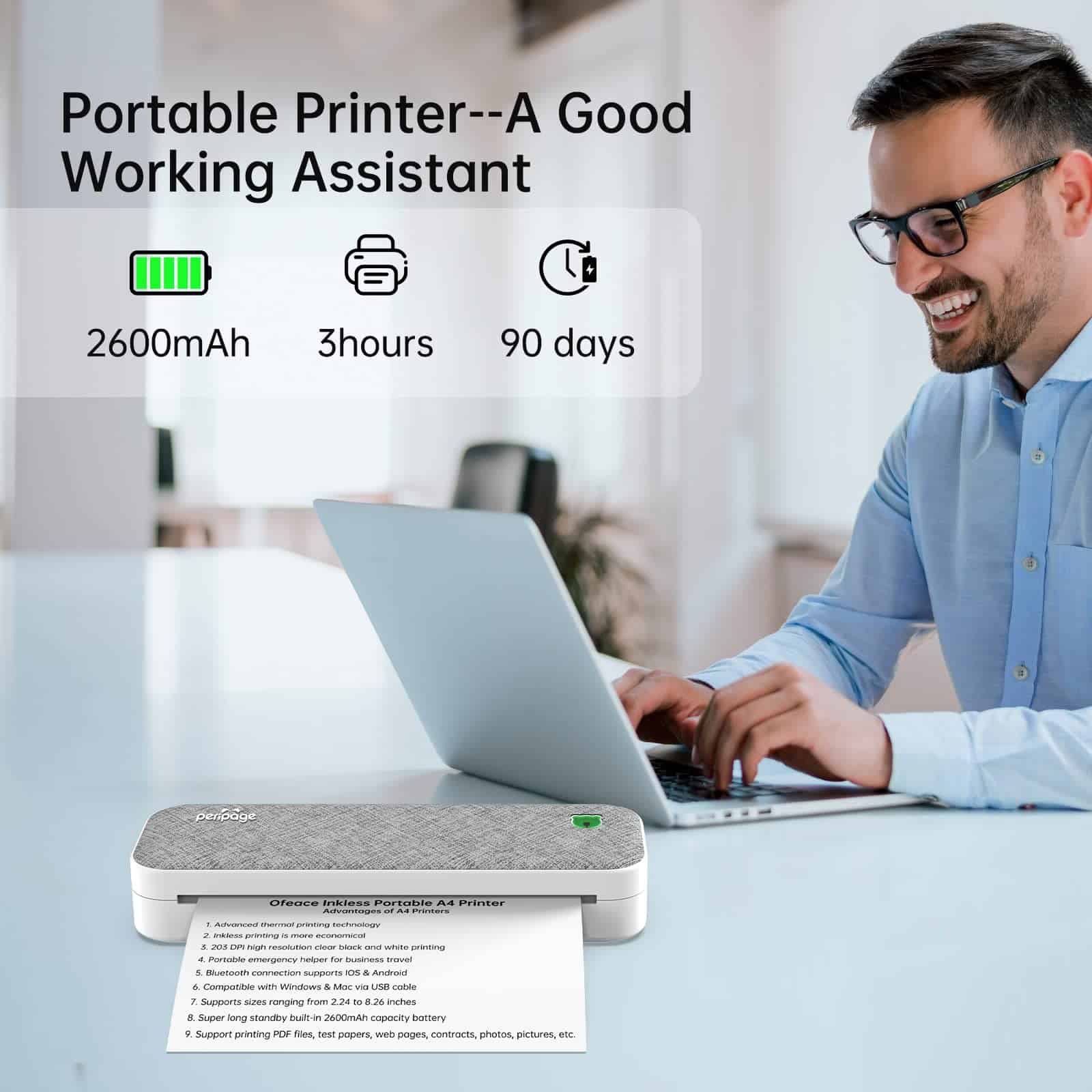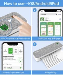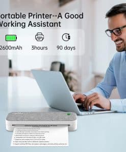 5. Batería de Gran Capacidad – Larga Duración La impresora portátil está equipada con 2 baterías incorporadas de 2600mAh, que pueden imprimir continuamente durante 3 horas y 360 hojas a la vez después de estar completamente cargadas. 90 días de tiempo de espera super largo. La impresora sin tinta puede imprimir archivos PDF, pruebas, páginas web, contratos, fotos, imágenes, etc. Es un buen asistente para personas de negocios y estudiantes.
