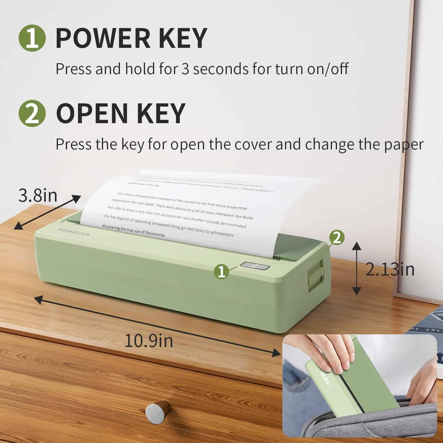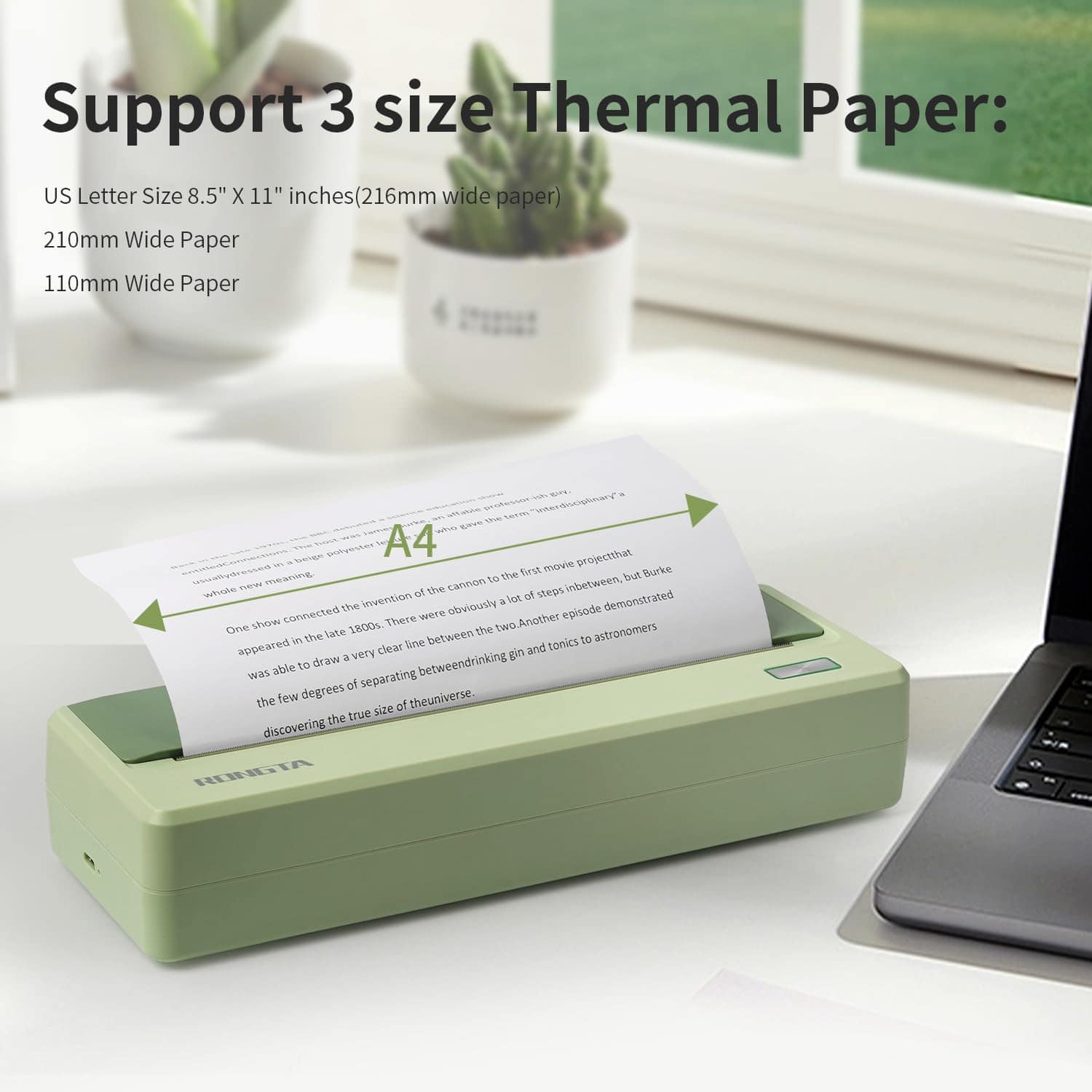 2. Tamaños múltiples: Puede soportar varios tamaños, incluyendo US Letter & Legal, A4, (ancho 216/210/110) papel térmico. Diseño mini y portátil, solo pesa 946 g, 277 96.5 54.3 mm, se puede guardar fácilmente en su bolso, le permite imprimir en cualquier momento y lugar.