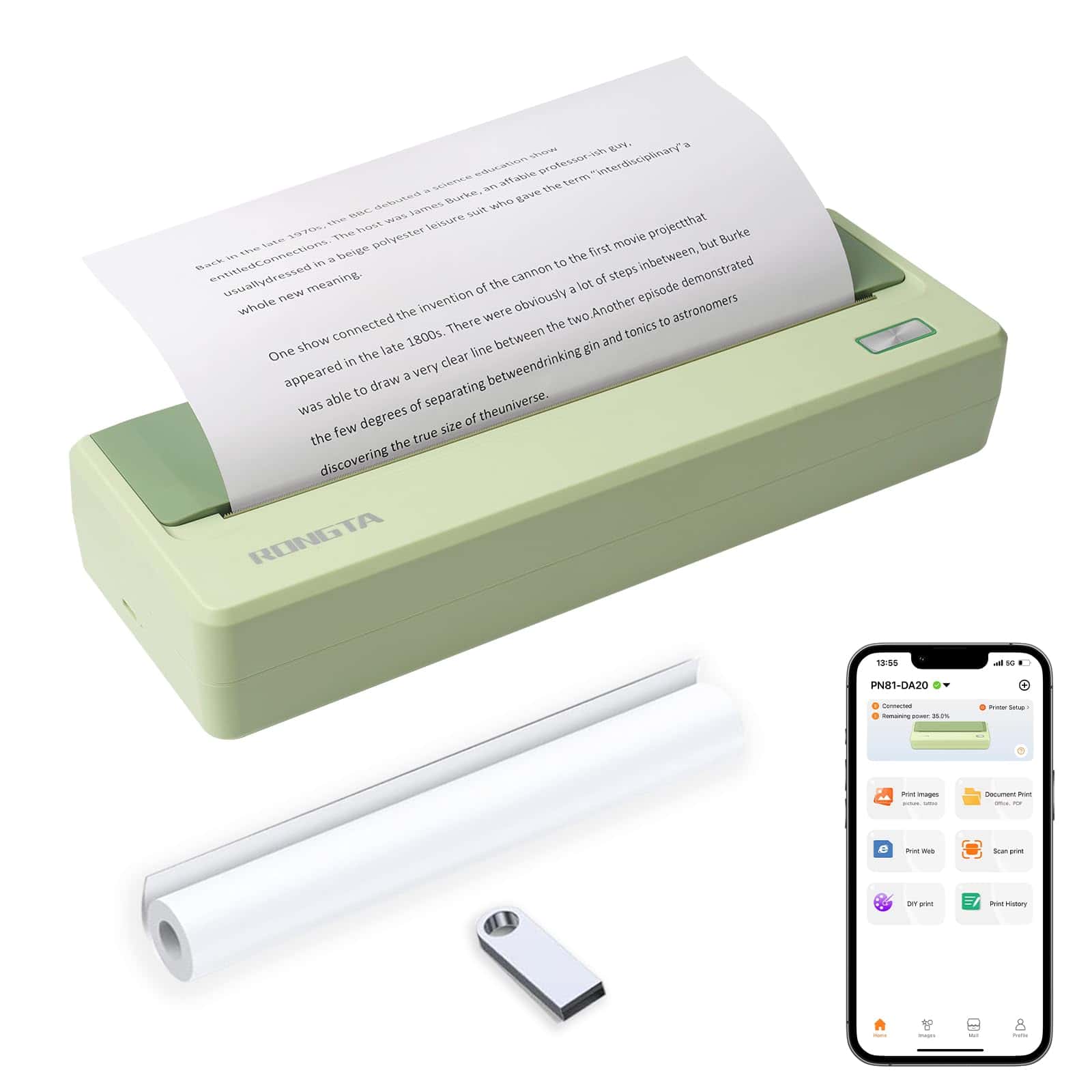 3. Impresión térmica sin tinta: Ya no necesita cartuchos de tinta, imprime recetas, formularios, cartas, tareas, materiales de estudio y documentos de viaje. Tenga en cuenta que esta impresora utiliza papel térmico para imprimir, incluye un rollo de papel térmico en la impresora.