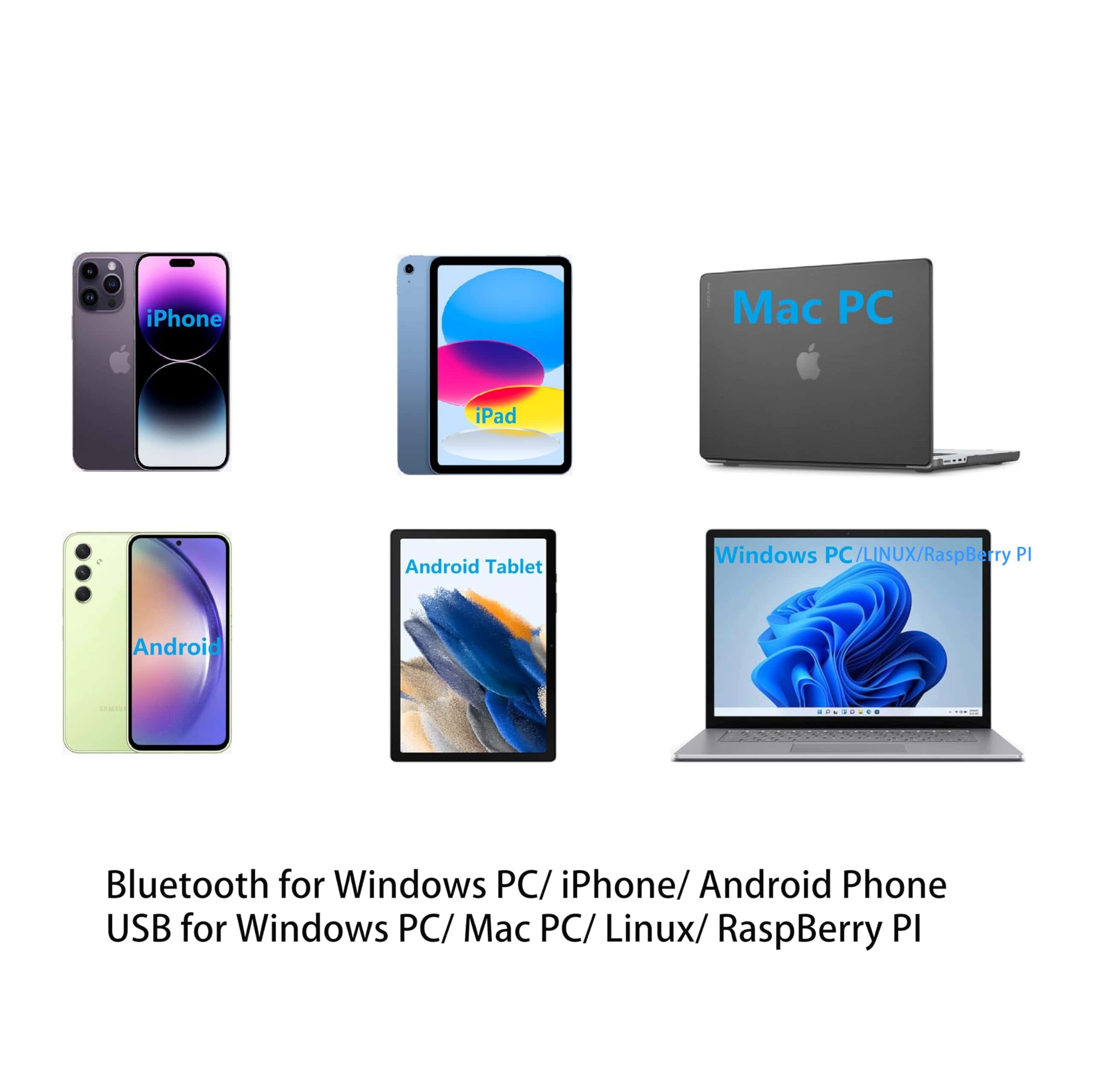 2. Compatibilidad inalámbrica y usb: Bluetooth inalámbrico para pc con windows iphone y teléfono android, cable usb para windows mac linux y raspberry pi, por favor descargue la aplicación sharpfox para el teléfono.