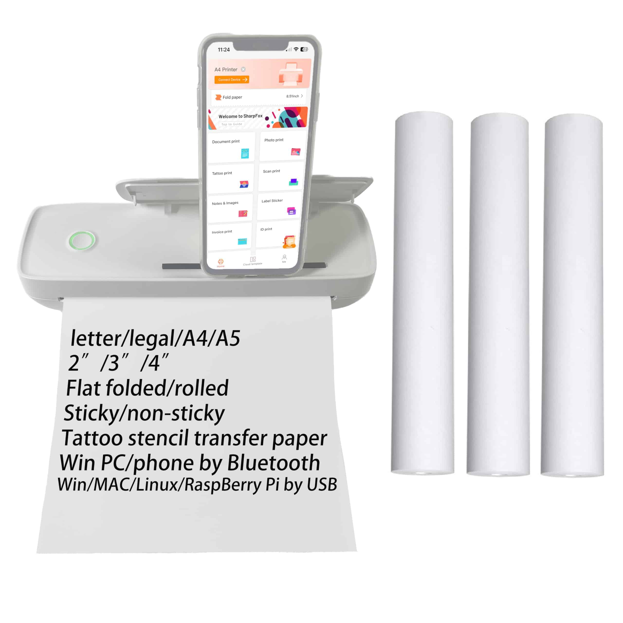 3. Tamaño de papel térmico sin tinta compatible: Enrollado o doblado plano carta de ee.uu., legal, a4, a5, 2, 3, 4 pulgadas.