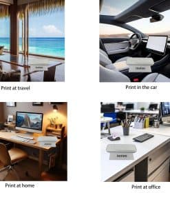 1. Pequeña impresora portátil inalámbrica sin tinta con soporte para teléfono: Hay un soporte para teléfono en la parte superior de la impresora para sostener el smartphone, no necesita tinta, solo necesita el papel térmico, ideal para imprimir en la oficina en casa mientras viaja en el coche en la escuela.