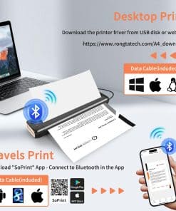 Impresora térmica portátil Rongta F81, la solución perfecta para imprimir de forma rápida y sencilla en cualquier lugar. Con soporte para conexiones Bluetooth y Wifi, podrás conectar tu teléfono, tablet o ordenador en cuestión de segundos y comenzar a imprimir tus documentos o imágenes. Su tamaño compacto y peso ultraligero la hacen ideal para llevar contigo a todas partes. El nuevo motor mejorado garantiza una impresión silenciosa y eficiente, perfecta para entornos donde se requiere un nivel de ruido bajo. Compatible con una amplia gama de dispositivos, como iPhone, iPad, teléfonos Android, tabletas Android y laptops con sistemas operativos Mac o Windows. Descarga la aplicación gratuita «SoPrint» y disfruta de una experiencia de impresión más personalizada. Nota importante: Esta impresora no es compatible con Linux ni Chrome OS, y solo se puede conectar a laptops a través del cable USB. Es necesario utilizar papel térmico para el correcto funcionamiento de la impresora.