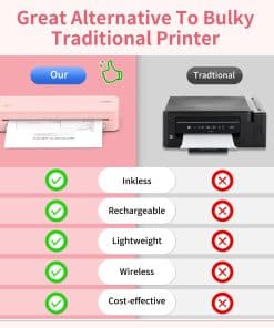 1. Impresión económica sin tinta: Ahorre en tinta, toner y cintas con esta impresora portátil para iPhone, perfecta para necesidades diarias como recetas, formularios, asignaciones y documentos de viaje. Cada papel térmico cuesta solo $0.07, proporcionando ahorros significativos anuales ideales para uso en el hogar, la oficina y la escuela. (Nota: Soporta solo papel térmico).