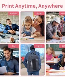 2. Portátil y versátil: Diseñada para la impresión sobre la marcha, esta ligera impresora térmica portátil cabe fácilmente en su coche o bolso. Perfecta para contratos, etiquetas, documentos de envío, pases de abordar y más, ya sea en la oficina o en un viaje de negocios.