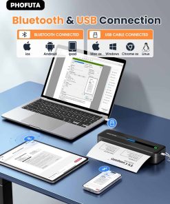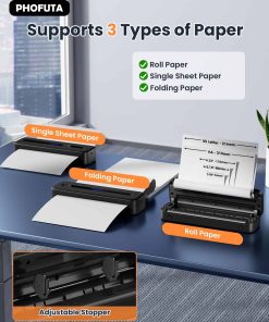 Impresoras portátiles PhoFuta M832 inalámbricas para viajes, pequeña impresora térmica sin tinta para teléfono y portátil, impresora compacta bluetooth para oficina en casa móvil, compatible con papel térmico A4 y carta de EE. UU. de 8.5 x 11. La Phofuta M832 es una impresora portátil ultra portátil que pesa solo 1.5 lb y tiene el tamaño de un estuche de lápices, lo que la hace perfecta para viajes de negocios, en el auto, en la oficina, en casa o en la escuela. Su diseño con contenedor de papel incorporado la hace adecuada para papel térmico ordinario plegado y rollos de papel, lo que ahorra la molestia de llevar papel de impresión adicional. La M832 es una impresora térmica sin tinta, lo que significa que no se necesita tinta, cinta o tóner, lo que la convierte en una opción económica y ecológica. Con una resolución de impresión de 300DPI y una batería recargable de 2600mAh, esta impresora garantiza una impresión clara y de alta calidad. Admite cinco tamaños de papel térmico y es compatible con rollos, hojas y papel plegado. Esta impresora es una solución versátil que satisface las necesidades de impresión de viajeros de negocios, trabajadores de oficina, autocaravanas, estudiantes, profesores y más. Nota: esta impresora solo funciona con papel térmico y solo imprime en blanco y negro, no se recomienda para imprimir imágenes de nivel profesional.