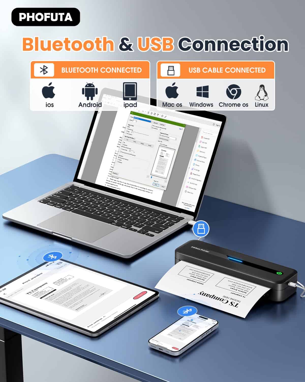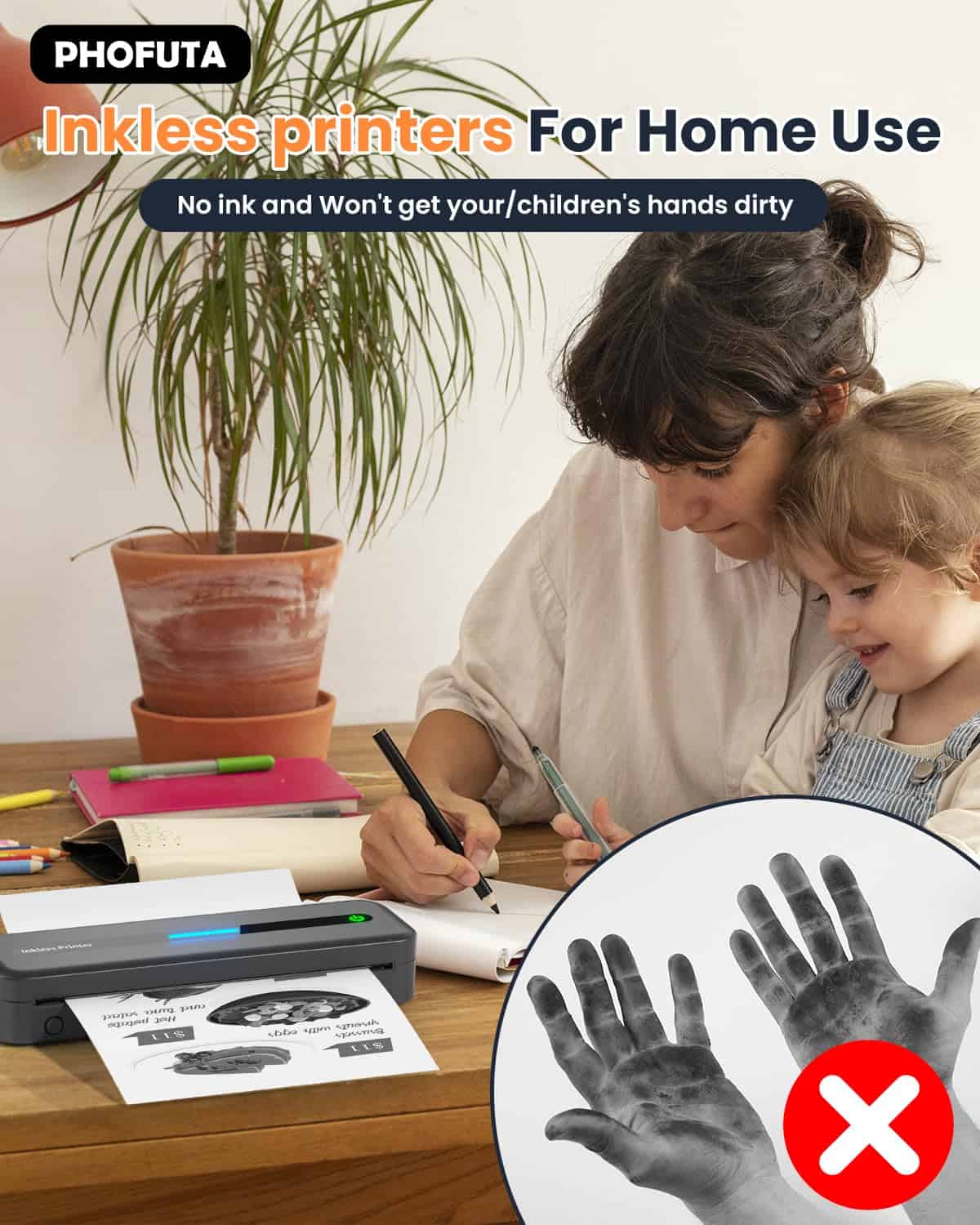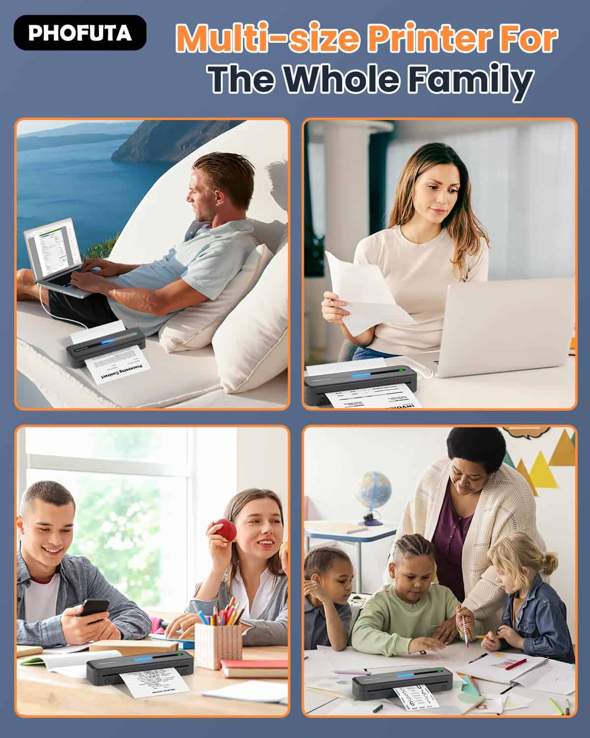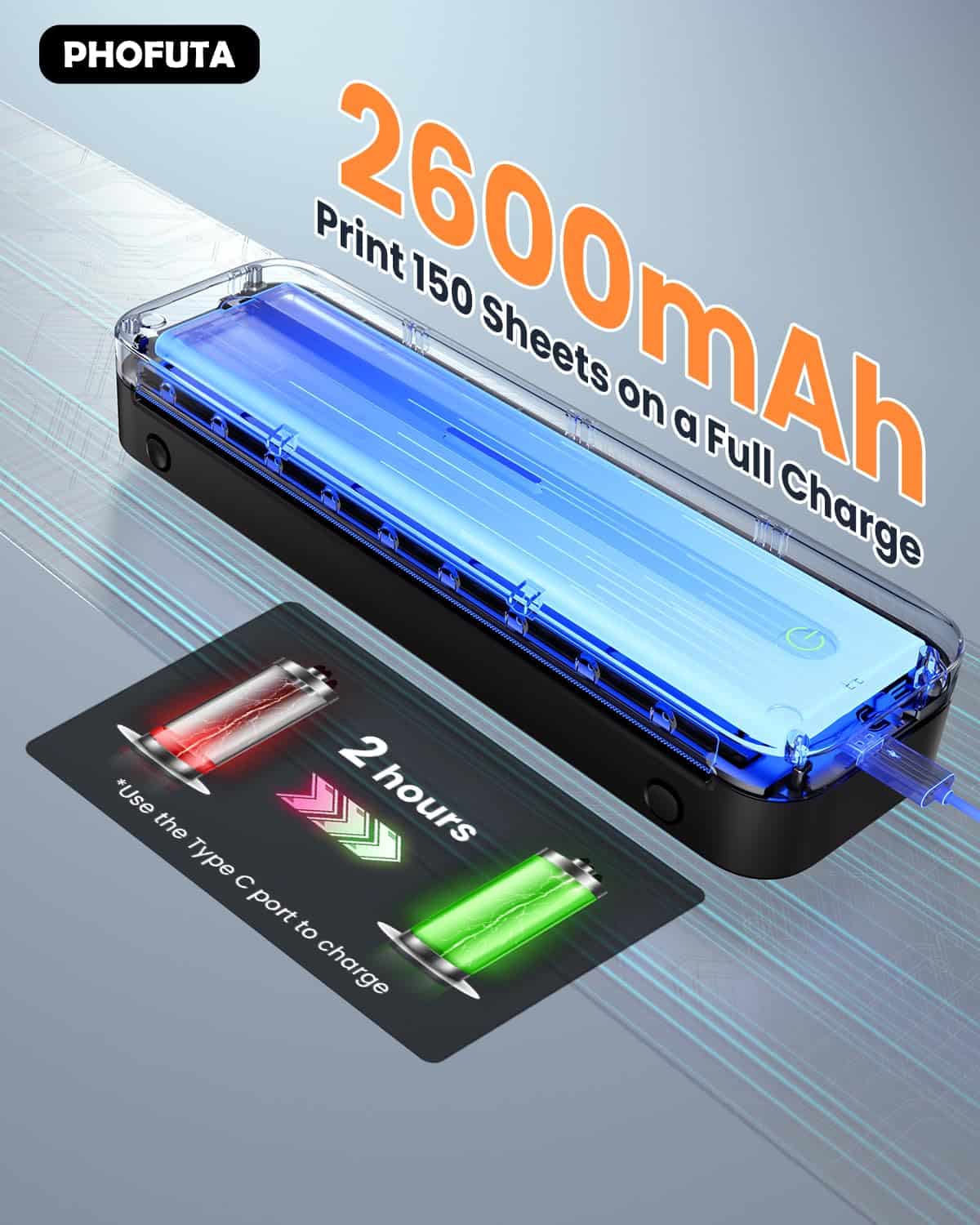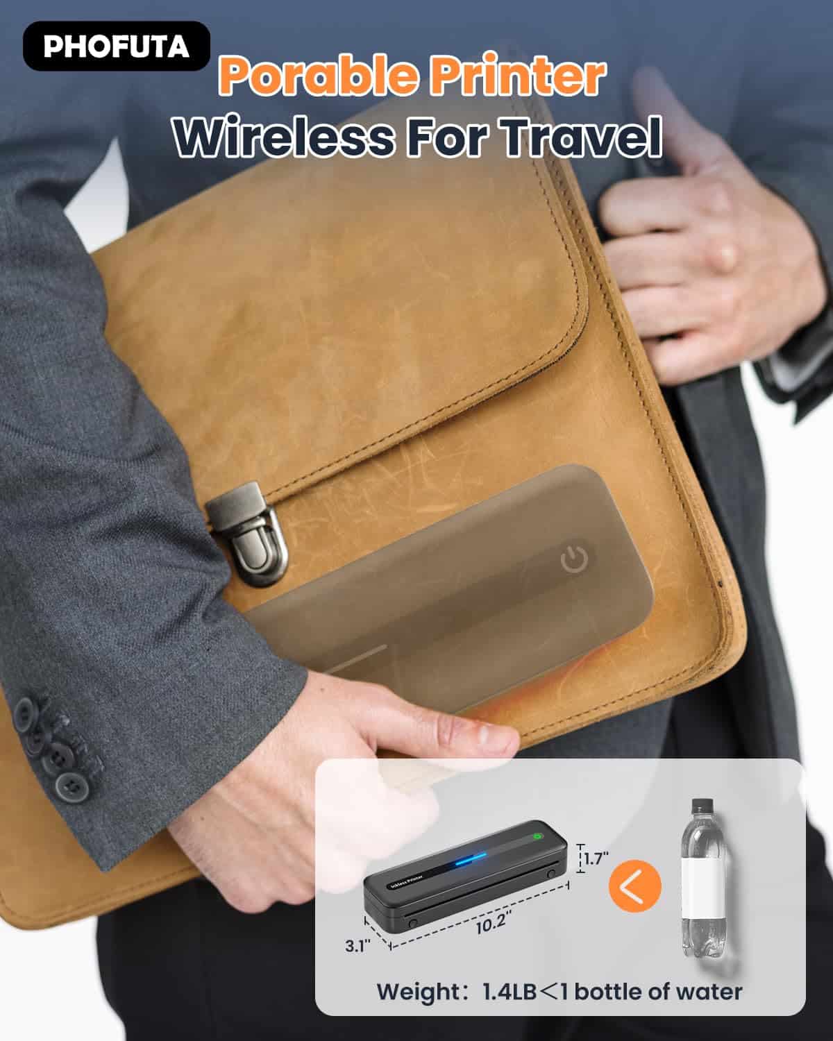 1. Impresora inalámbrica ultra portátil Phofuta M832 para viajes pesa solo 1.5 lb (como una botella de agua) y es del tamaño de un estuche de lápices. Es tan portátil, se ajusta fácilmente en su bolso, y funciona muy bien para viajes de negocios, en el auto, en la oficina, en casa o en la escuela.
