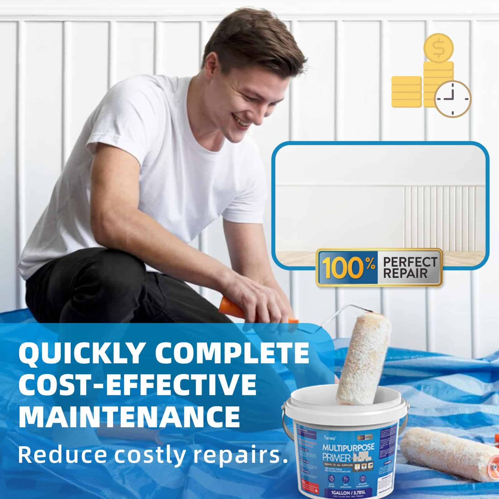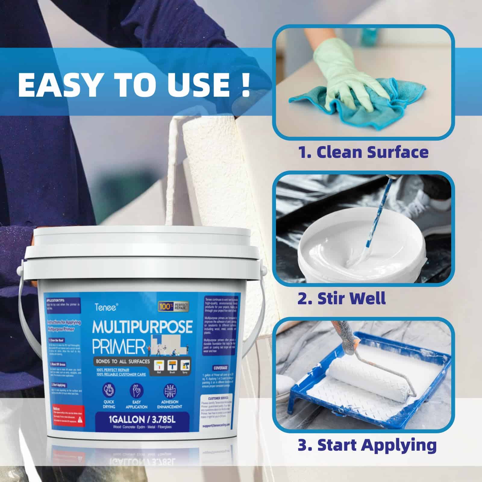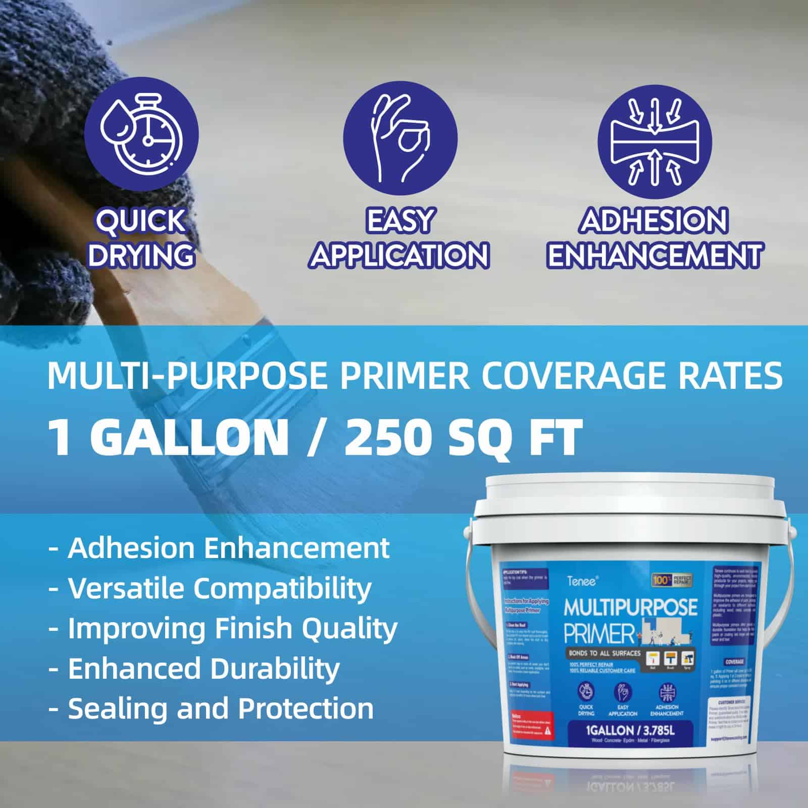 5. Mejora de la Longevidad: El imprimador Multiusos de la marca Tenee mejora la durabilidad y longevidad de los recubrimientos. Perfecto para cualquier proyecto de pintura, en interiores o exteriores. Adecuado para usar en una amplia gama de superficies, incluyendo madera, metal, paneles de yeso y mampostería.