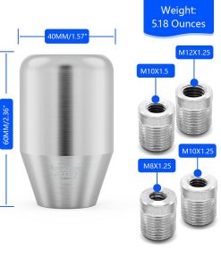 Incremente la apariencia de su interior con esta palanca de cambios manual automática ponderada de 6 velocidades en color plata. Con un peso de 5.18 onzas y dimensiones de 2.36″ de altura y 1.57″ de diámetro, esta palanca no solo mejora la estética interior de su automóvil, sino que también facilita los cambios de marcha. Viene con 4 adaptadores para una compatibilidad universal con roscas M8 x 1.25, M10 x 1.25, M10 x 1.5, M12 x 1.25, lo que la hace adecuada para la mayoría de los autos manuales y automáticos. ¡Eleva tu experiencia de conducción con esta palanca de cambios de alta calidad!