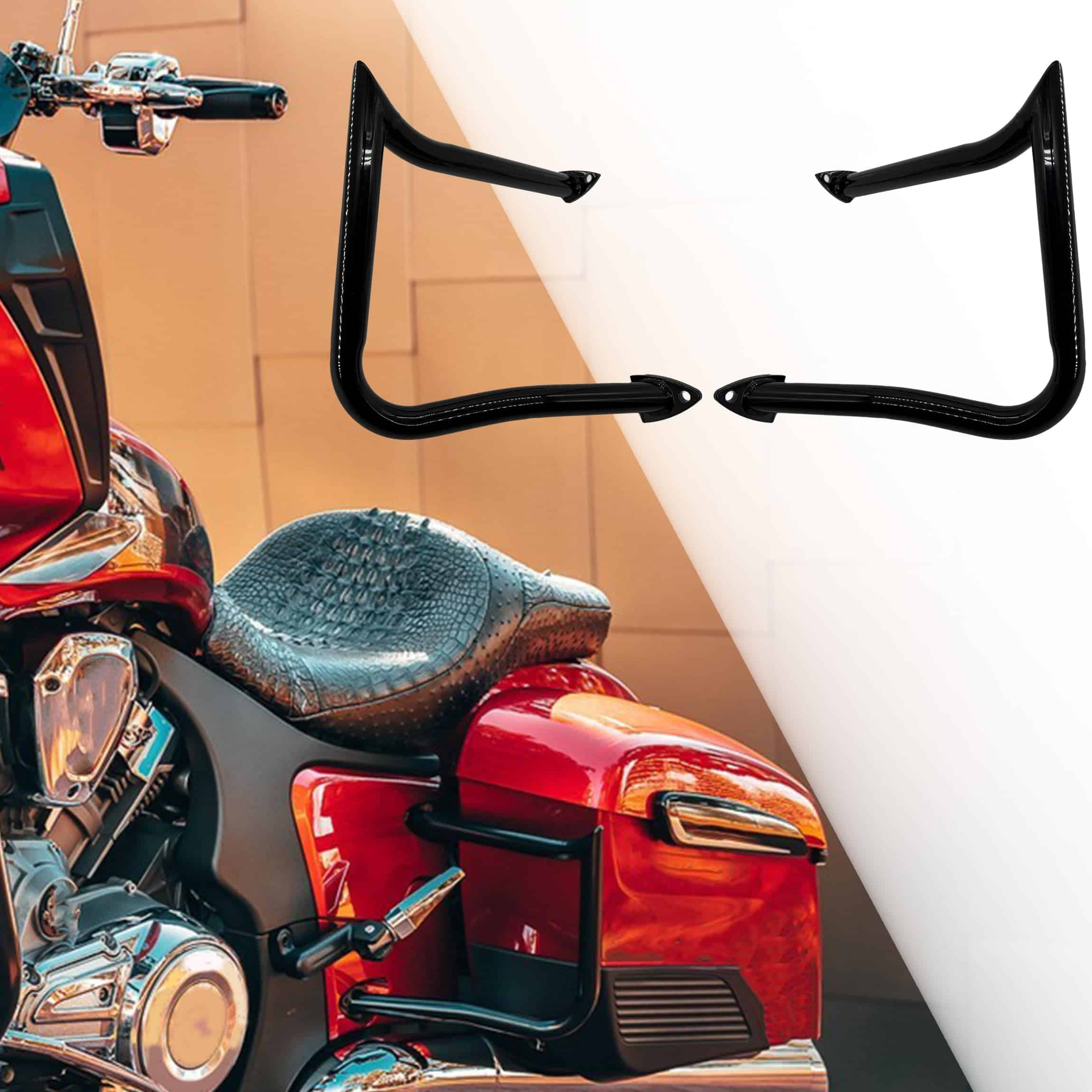 Las Barras Traseras Indian Spike Hook están diseñadas para resolver desafíos comunes para los motociclistas, ofreciendo un equilibrio perfecto entre estilo, durabilidad y protección. Estas barras traseras de carretera están fabricadas con acero de alta resistencia con un acabado brillante en Gloss Negro premium, proporcionando resistencia duradera a la corrosión y al desgaste, manteniendo tu motocicleta Indian con un aspecto elegante, paseo tras paseo.