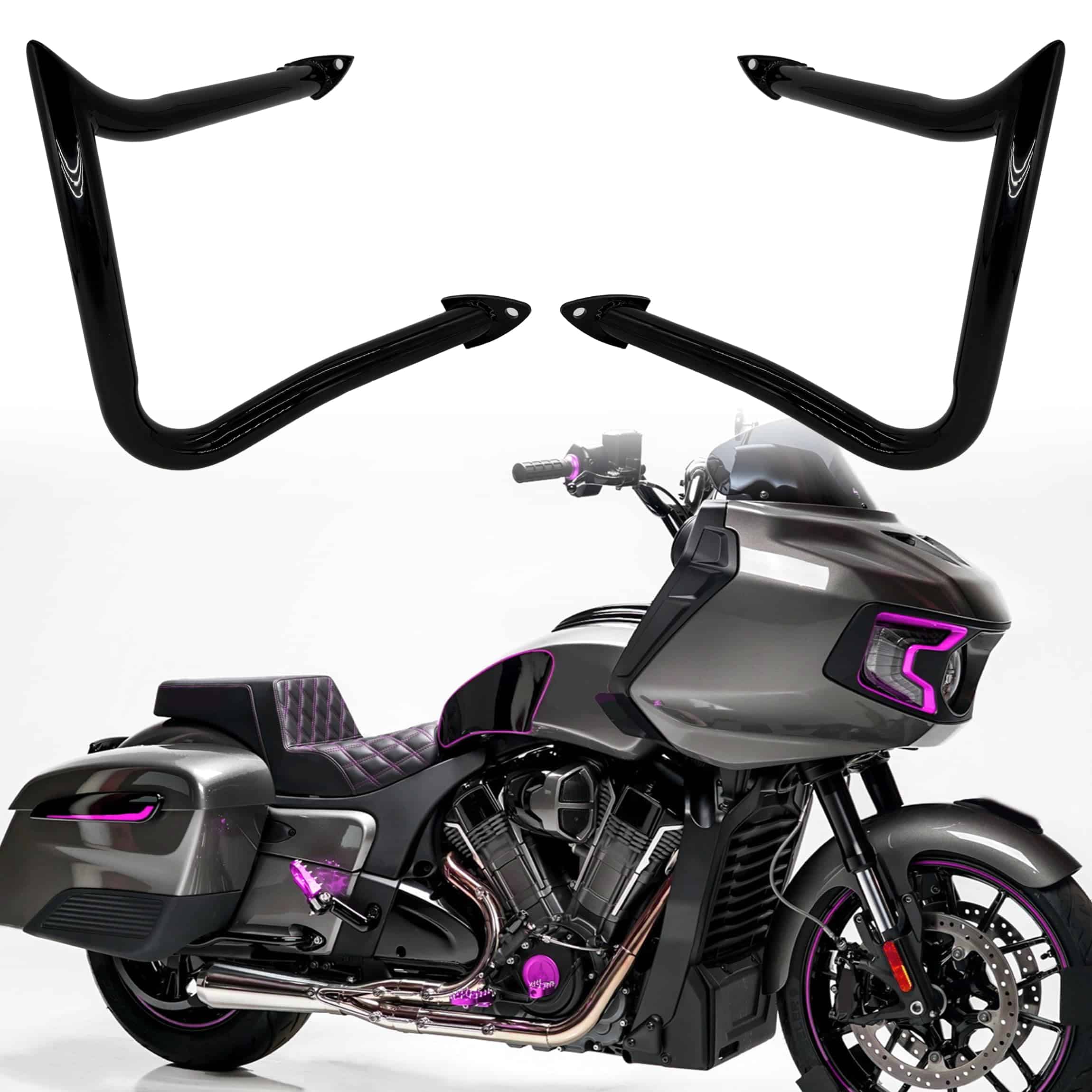 Experimenta la combinación perfecta de funcionalidad y estilo. Nuestras barras traseras de carretera están diseñadas para los motociclistas de Indian Roadmaster, Chieftain, Chief y Challenger que buscan una protección contra choques duradera con un aspecto único. Conduce con confianza, sabiendo que has equipado tu moto con barras de choque traseras de alta calidad y fáciles de instalar que cumplen con tus necesidades exactas.