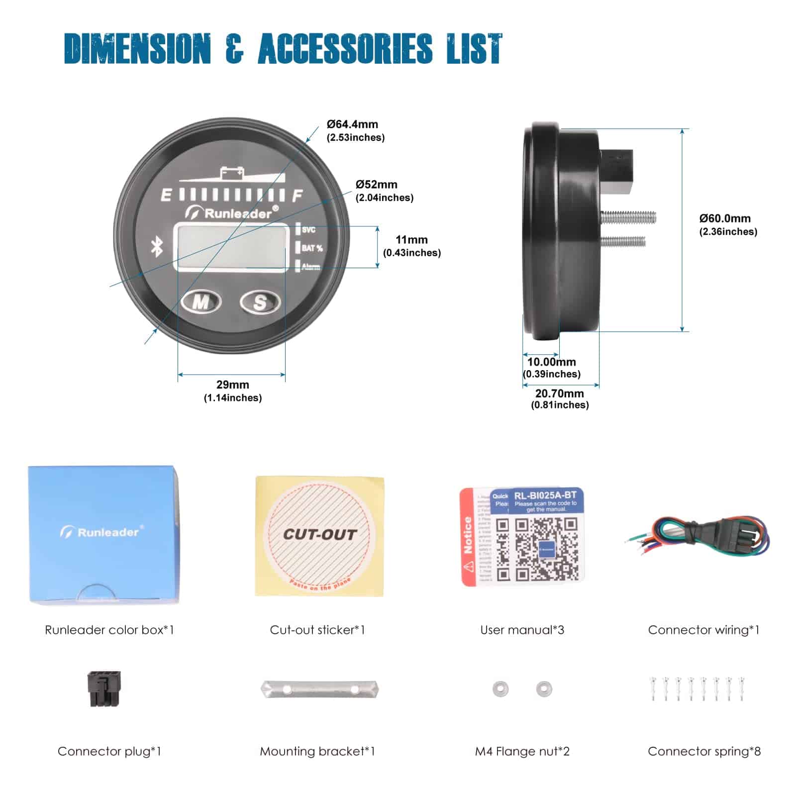 Indicador de batería LED Bluetooth de 12V a 48V Runleader,