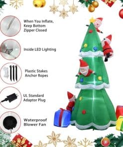 Este inflable es ideal para decorar dentro y fuera del hogar. También puede ser una gran adición a tus fotos familiares. Los materiales ligeros y el diseño autoinflable hacen que sea fácil para cualquier miembro de la familia configurar y desmontar. Se infla automáticamente en cuestión de minutos. Resistente a la intemperie de poliéster.