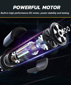 5. ILUMINACIÓN INCORPORADA – Para simplificar el uso del compresor por la noche, se integra una luz LED en la parte superior de la bomba eléctrica. Bolsa de almacenamiento de tela incluida. Puntera Shrader, Presta y aguja para balón incluida.