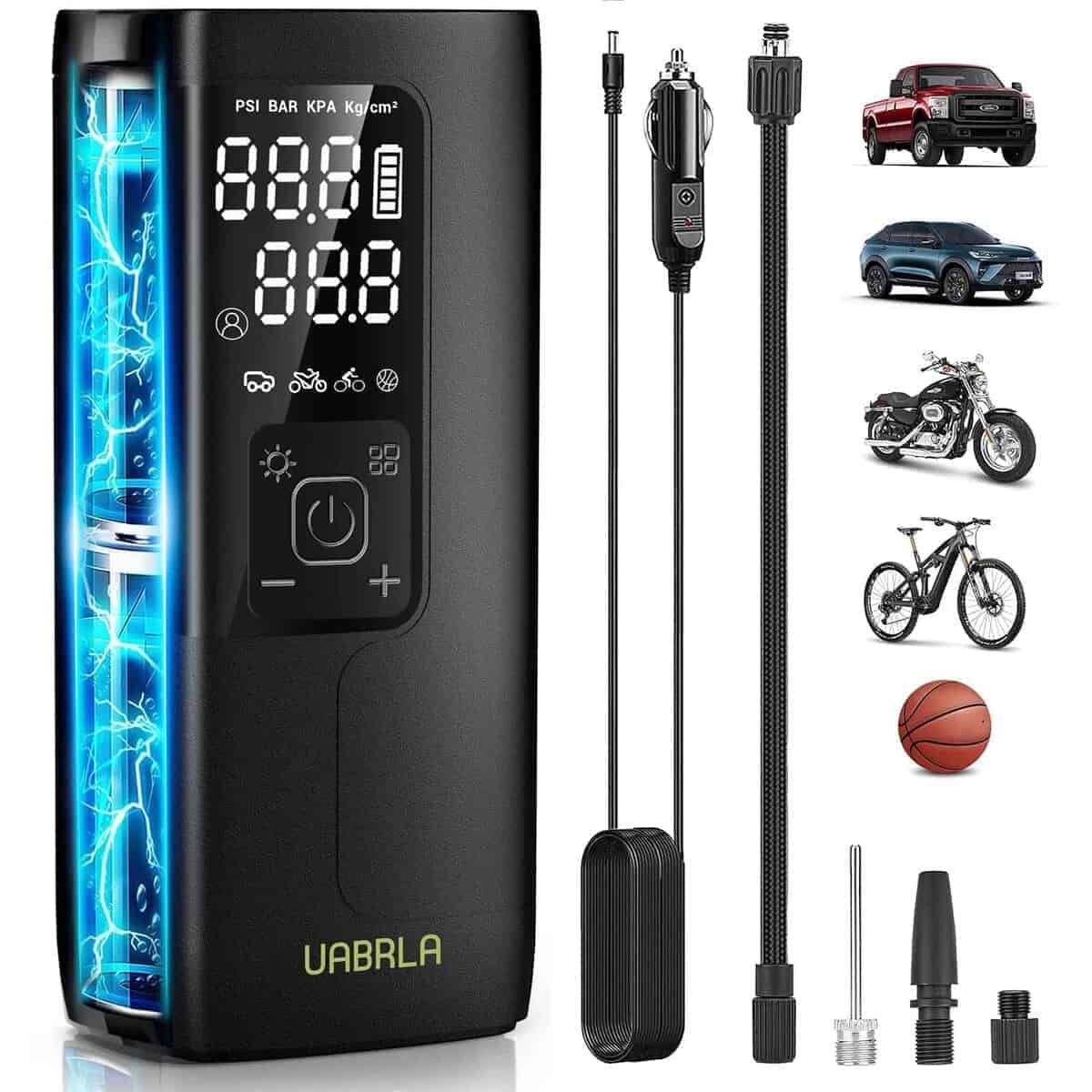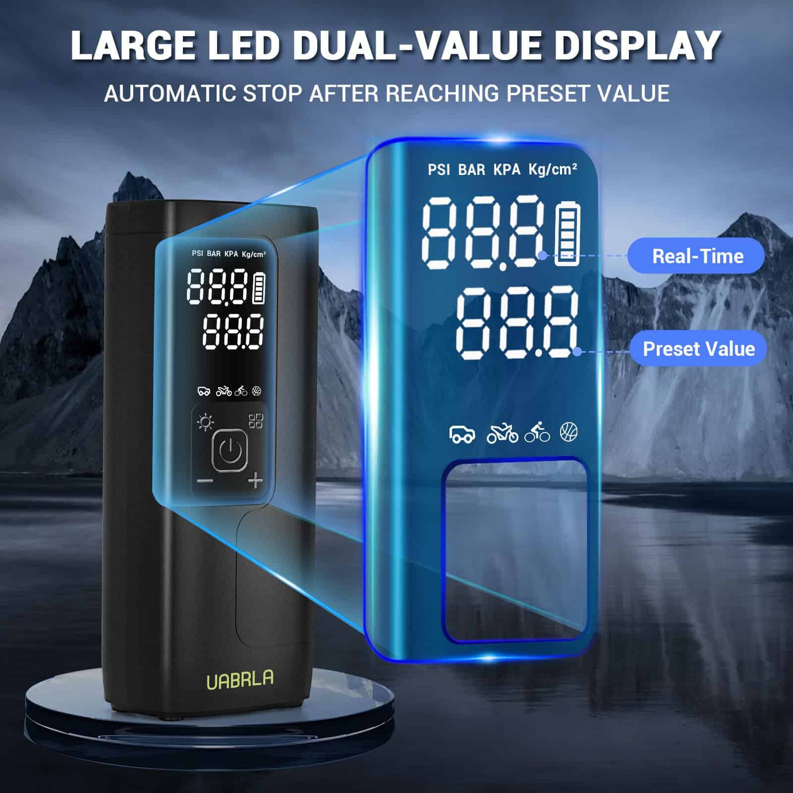 4. CHIPS DE ALTA PRECISIÓN: Actualizado con chips de alta precisión, nuestra mini bomba de bicicleta mejora la precisión de detección de la presión de neumáticos en 0.5 PSI. La pantalla muestra valores de presión en tiempo real para una observación y operación fáciles. El inflador de neumáticos para automóvil también se apaga automáticamente cuando se alcanza un valor preestablecido, evitando la sobrecarga y recordando el último valor preestablecido para evitar operaciones repetidas.