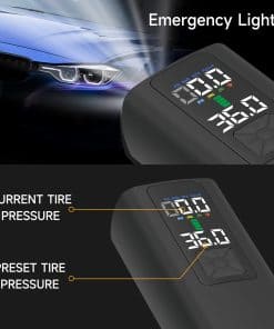 Las características avanzadas de este compresor de aire incluyen un control preciso de la presión que garantiza su seguridad en todo momento. El chip de detección de presión de aire de alta precisión muestra la presión actual y la presión objetivo en tiempo real con colores, permitiéndole monitorear de cerca el inflado de sus neumáticos. La bomba de aire detendrá automáticamente el flujo cuando se alcance la presión deseada, evitando cualquier exceso de presión y manteniendo sus neumáticos seguros y en buenas condiciones.