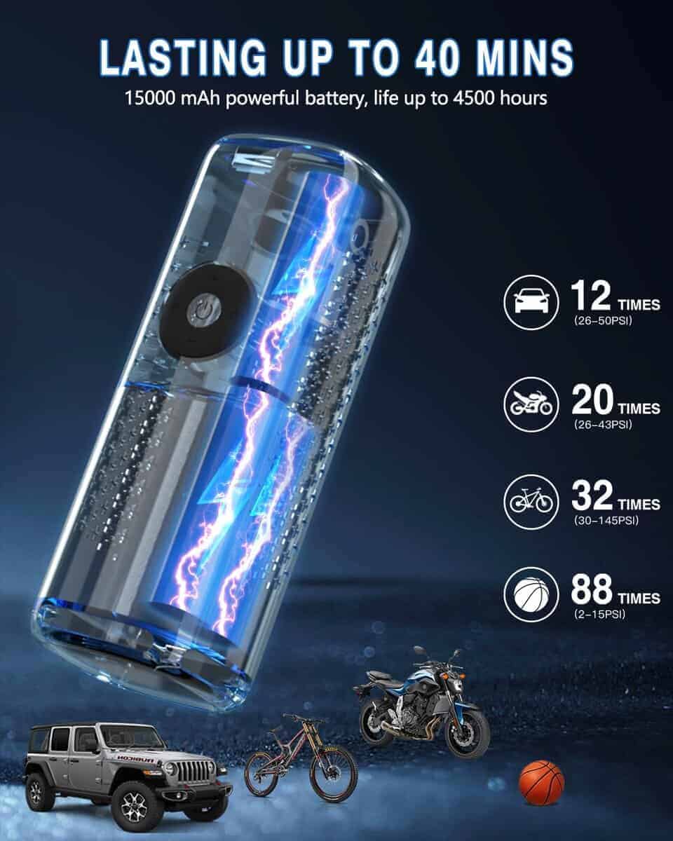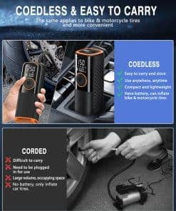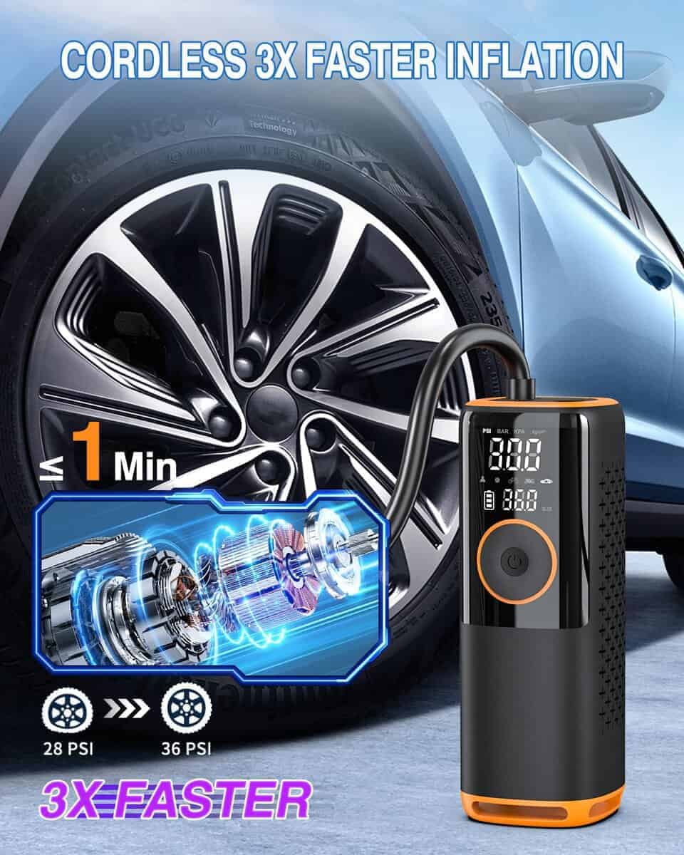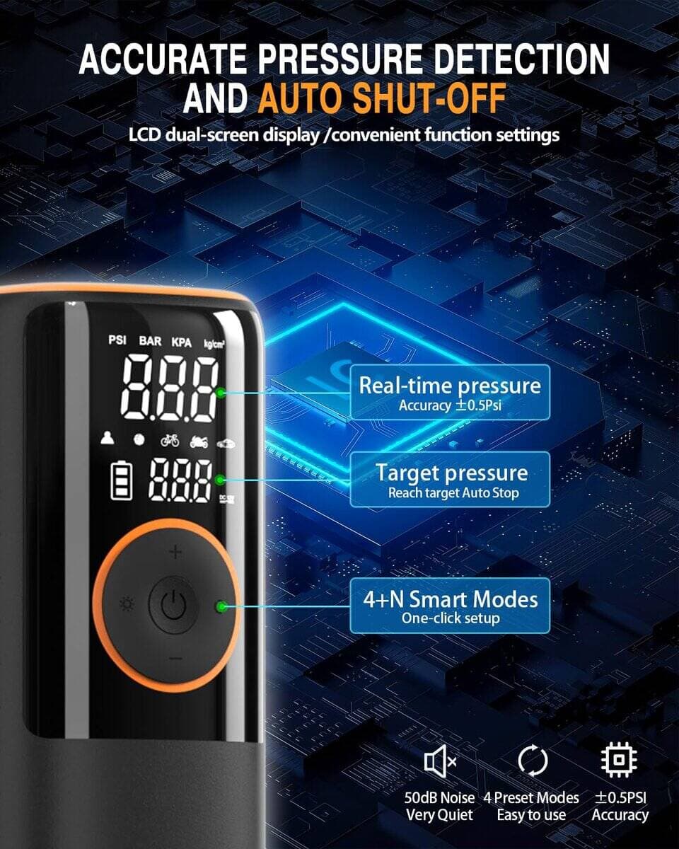 CalKoo Inflador de neumáticos Compresor de aire portátil, 160PSI Bomba de aire portátil inalámbrica para neumáticos de coche con batería de 6000mAh, Inflado rápido 3 veces, Pantalla precisa de presión con pantalla LCD dual para coches, bicicletas, motos, pelotas y mucho más.