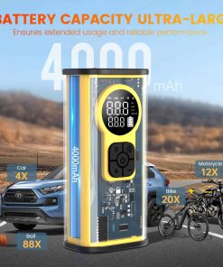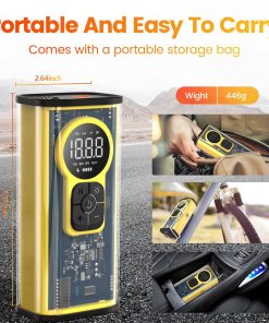 2. Diseño MINI portátil: la bomba de aire vogma para neumáticos de automóvil adopta un tamaño compacto. Casi la misma longitud y anchura que su teléfono inteligente. Está equipado con una bolsa de almacenamiento para un fácil almacenamiento en automóviles, bastidores de bicicletas o mochilas. Batería de iones de litio de 4000 mAh incorporada, que proporciona suficiente energía para inflar 3-4 neumáticos de automóvil R15 o 12 neumáticos de bicicleta de carretera con una sola carga. Esta es una bomba de aire portátil de la que nunca tendrá que preocuparse por perder potencia.