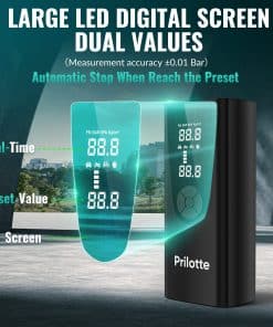 4. Compresor de aire portátil – La gran pantalla digital LED muestra los valores preestablecidos y la presión en tiempo real, lo que facilita su lectura y observación del estado de la presión de los neumáticos en tiempo real. No es necesario preocuparse por inflar demasiado los neumáticos.