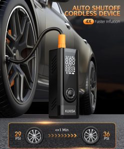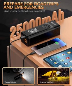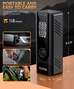 Esta bomba de aire portátil es la solución perfecta para mantener los neumáticos de tu vehículo, bicicleta o motocicleta inflados en todo momento. Con una potencia persistente de 25000mAh, no necesitas buscar una fuente de alimentación externa al usarla, ya que proporciona una velocidad de inflado tres veces más rápida que otros infladores inalámbricos del mercado. Su pantalla LCD dual muestra tanto la presión en tiempo real como los valores preestablecidos, lo que facilita la lectura y observación del estado de los neumáticos. Además, tiene modos de inflado preestablecidos para diferentes tipos de vehículos y objetos inflables, y ofrece una presión máxima de 180 PSI. Con múltiples funciones prácticas, como un puerto USB de salida/entrada de emergencia y una luz LED de emergencia, esta bomba de aire es un accesorio versátil y esencial para cualquier conductor. Incluye una variedad de accesorios y una bolsa de almacenamiento para mayor comodidad. ¡No te quedes varado en la carretera sin este inflador de neumáticos portátil!