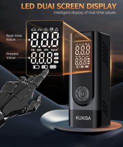 2. Pantalla dual Este inflador de neumáticos tiene una pantalla LCD digital dual, que puede mostrar simultáneamente la presión en tiempo real y los valores preestablecidos, facilitando la lectura y observación del estado de presión de los neumáticos. El chip de alto rendimiento incorporado proporciona una presión máxima de 180 PSI y un caudal de aire de 30 L/min. Infla los neumáticos de coches pequeños en menos de 1 minuto y se apaga automáticamente cuando se alcanza la presión establecida, proporcionando una garantía de uso seguro y fiable.