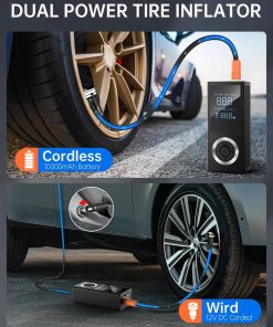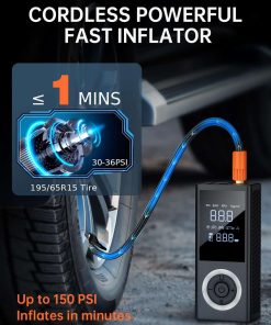 Inflador de neumáticos inalámbrico de 150 PSI con compresor de aire portátil con batería recargable, manómetro de presión de neumáticos, adaptador de corriente para automóvil de 12V para automóvil, motocicleta, bicicleta, bola