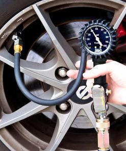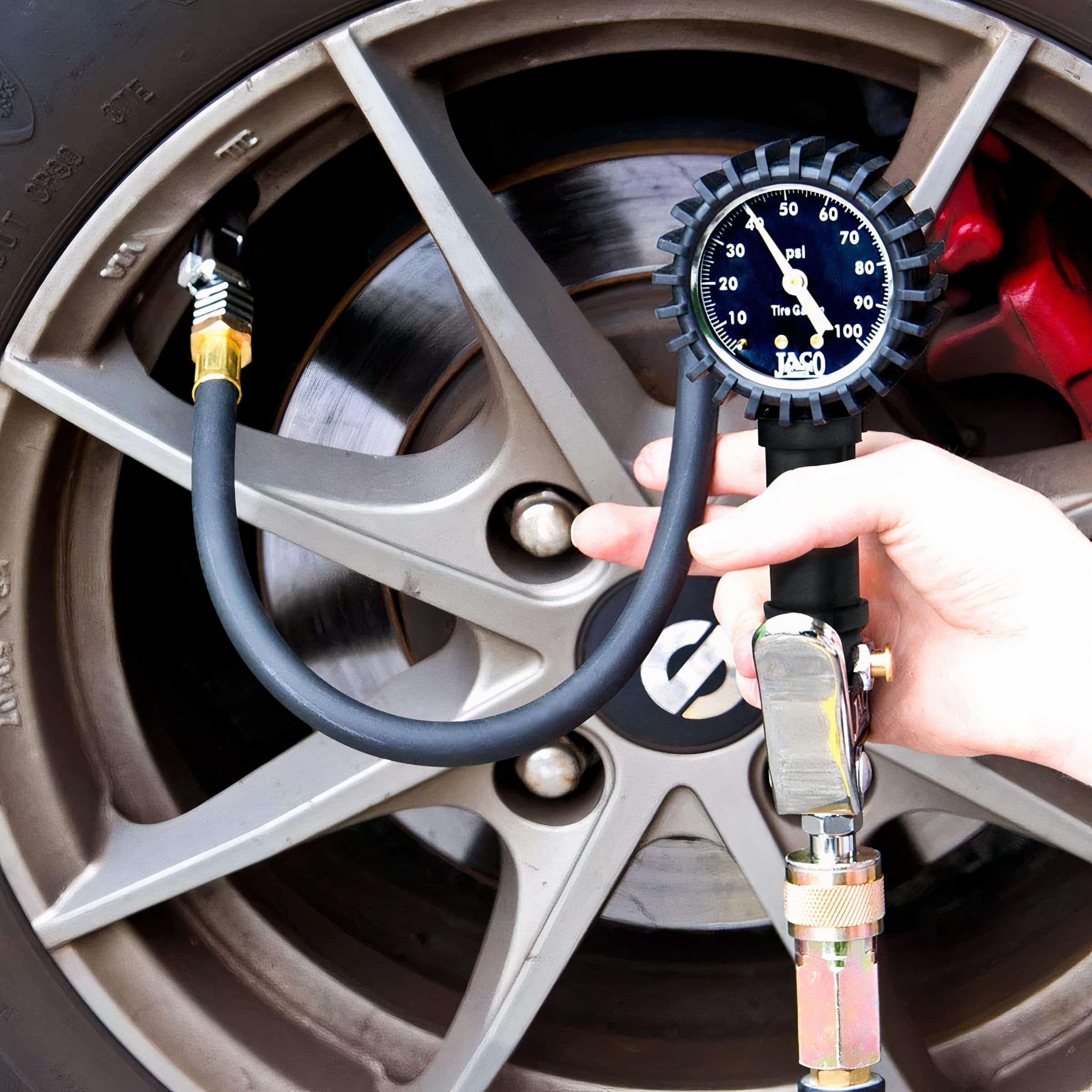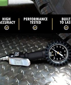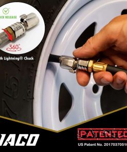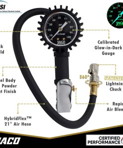Inflador de neumáticos JACO FlowPro con medidor de presión – 100 PSI es una herramienta de inflado de neumáticos profesional y de alta calidad que ofrece precisión y durabilidad. Recomendado por mecánicos por su precisión probada y calibrada al 2%, este inflador de neumáticos puede medir, inflar y desinflar neumáticos de hasta 100 PSI sin necesidad de baterías. El dial del medidor de 100 PSI brilla en la oscuridad para una mejor visibilidad por la noche. Construido con una estructura de acero resistente con un acabado recubierto de polvo, una manguera de aire híbrida flexible de 21 pulgadas, un gatillo de pulgar preciso para inflar y una válvula de purga de aire incorporada para un desinflado rápido y preciso, este inflador de neumáticos está diseñado para durar. Incluye la boquilla de aire patentada Lightning Air Chuck con bloqueo automático y una válvula de liberación rápida, lo que garantiza un sellado adecuado sin fugas de aire. Además, viene con un kit de línea de aire completo que está listo para la conexión en línea a su configuración de compresor de aire. Los accesorios incluyen un accesorio de conexión rápida industrial de 1/4 pulgadas NPT y cinta de sellado de rosca. Con el respaldo de la garantía de JACO, este inflador de neumáticos asegura un mayor tiempo de vida de los neumáticos, un mejor rendimiento de combustible y una experiencia de conducción más suave con neumáticos inflados correctamente.