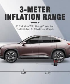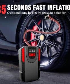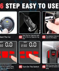 Inflador de neumáticos LONLEEYU, Bomba de compresor de aire portátil de 120W para neumáticos de coche con detección de presión de neumáticos preestablecida y apagado automático, 12V hasta 150PSI Bomba de neumáticos con medidor de presión digital y luz LED. Este inflador de neumáticos es la solución perfecta para mantener los neumáticos de su vehículo inflados adecuadamente en todo momento. Con una presión máxima de 150 PSI, puede inflar rápidamente los neumáticos de su coche, bicicleta, motocicleta, ATV, SUV, colchón de aire, botes inflables, pelotas y otros inflables. Simplemente conéctelo al enchufe de 12V en su vehículo, ajuste el valor de presión deseado y presione el interruptor para comenzar a inflar. Además, este compresor de aire tiene un apagado automático que se activa cuando se alcanza el valor preestablecido, brindándole tranquilidad durante el uso. El inflador de neumáticos también está equipado con una luz LED brillante que le permite usarlo fácilmente incluso en la oscuridad. La pantalla digital de alta precisión y alta luminosidad le ayuda a verificar la presión de los neumáticos y preestablecer los valores deseados. Con un cable de alimentación de 3 metros y adaptadores inflables adicionales, puede alcanzar todos los neumáticos de su vehículo. Nota: Este inflador de neumáticos no es adecuado para camiones o vehículos de gran tamaño. Para prolongar la vida útil del producto, asegúrese de apagarlo después de diez minutos de uso continuo y permita que se enfríe durante diez minutos antes de volver a usarlo.