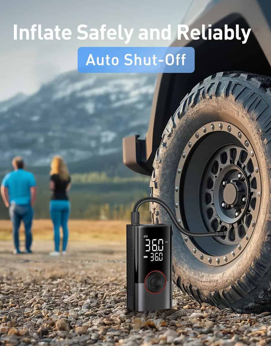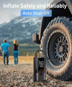 3. Apagado automático de seguridad: El compresor de aire para neumáticos está diseñado con una función de apagado automático que evita la sobreinflación al detener la bomba de aire cuando se alcanza la presión preestablecida, garantizando un uso seguro tanto para neumáticos de coches como de bicicletas.