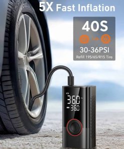 1. Inflado más rápido en 40 S: Este inflador de neumáticos portátil puede inflar tu neumático de coche de 30 a 36 PSI en 40 segundos, asegurando que pases menos tiempo esperando y más tiempo conduciendo, para que puedas volver a la carretera en poco tiempo.