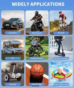 4. 5 Modos: Este compresor de aire eléctrico para neumáticos de coche incluye cuatro modos preestablecidos para coches, motocicletas, bicicletas y pelotas deportivas, así como un modo manual para inflado personalizado, convirtiéndolo en el compresor de aire portátil perfecto para todas tus necesidades de inflado.