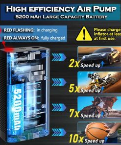 1. 5 modos de inflado ACCESORIOS DE COCHE GENIALES. Inflador de aire portátil ArTea para coche con 5 modos de inflado preestablecidos (coches, motocicletas, bicicletas, pelotas y manual). El modo manual le permite ajustar la presión deseada de 2-120 psi según diferentes inflables.