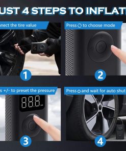 1. 5 MODOS DE INFLADO ACCESORIOS DE COCHE GENIALES: Inflador de aire portátil ArTea para coche con 5 modos de inflado preestablecidos (coches, motocicletas, bicicletas, pelotas y manual). El modo manual le permite ajustar la presión deseada de 2-120 psi según diferentes inflables. 2. COMPRESOR DE AIRE PORTÁTIL DE INFLADO RÁPIDO: Mini compresor de aire portátil ArTea perfecto para necesidades diarias o emergencias. Este potente inflador de neumáticos para coche está equipado con un motor de alta eficiencia. Rango ajustable 0-150 PSI/0.2-8.2 Bar. Solo tarda 30 segundos en inflar una bicicleta de casa y unos minutos en inflar un neumático de coche 205/55 R16. 3. INFLADOR DE NEUMÁTICOS SIN CABLE 150 PSI Y FÁCIL DE ALMACENAR: No se necesita fuente de alimentación externa, compresor de aire portátil ArTea para neumáticos de coche con una batería recargable. Con su tamaño ligero y compacto de 4.7 x 2.7×1.8 pulgadas, puede almacenar fácilmente este compresor de aire con batería en su mochila, bolsillo y consola central del coche y sacarlo para usarlo en cualquier momento, en cualquier lugar. 4. CONTROL INTELIGENTE DE LA APLICACIÓN Y 3 MODOS DE LUZ: Inflador de neumáticos para coche disponible para iOS y Android. Función para monitorización y ajuste de la presión de aire en tiempo real por teléfono móvil. En la parte superior de este inflador de neumáticos para coche hay una luz LED que proporciona comodidad para inflar y cambiar neumáticos en la oscuridad. 5. PANTALLA DIGITAL LED Y APAGADO AUTOMÁTICO: Este compresor de aire portátil para neumáticos de coche con diseño portátil viene con un manómetro preciso y una gran pantalla digital LED, que le permite leer la presión en tiempo real y la presión preestablecida. Esta bomba de neumáticos compacta para coche se detendrá automáticamente una vez alcanzada la presión preestablecida. En estado de encendido, si no hay operación en 30 segundos, el inflador de neumáticos portátil para coche se apagará automáticamente. 6. BUEN SERVICIO Y ACCESORIOS COMPLETOS: La bomba de aire para neumáticos de coche de ArTea ofrece servicio al cliente las 24 horas. Siempre le proporcionamos productos de alta calidad y un excelente servicio, no dude en contactarnos en nuestra tienda enviando correos si tiene alguna pregunta. SI LO QUE COMPRÓ NO ES PERFECTO, ¡Ofrecemos servicio GRATUITO de cambio de producto y reembolso!