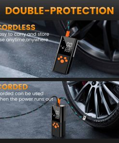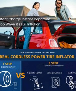 1. Inflador de neumáticos de potencia persistente. Inflador de neumáticos actualizado, presión máxima de 150 PSI con 22 cilindros, 25000mAh, batería recargable, bomba de aire para coches, camiones, SUV, motocicletas y bicicletas, puede inflar 30 neumáticos de coche o 60 neumáticos de bicicleta de carreras. La velocidad de inflado es 3 veces más rápida que otros infladores inalámbricos ordinarios en el mercado, con un aumento del 45% en la potencia. El inflador de neumáticos portátil puede funcionar continuamente durante 5 a 6 horas y solo tarda 3 horas en cargarse por completo.