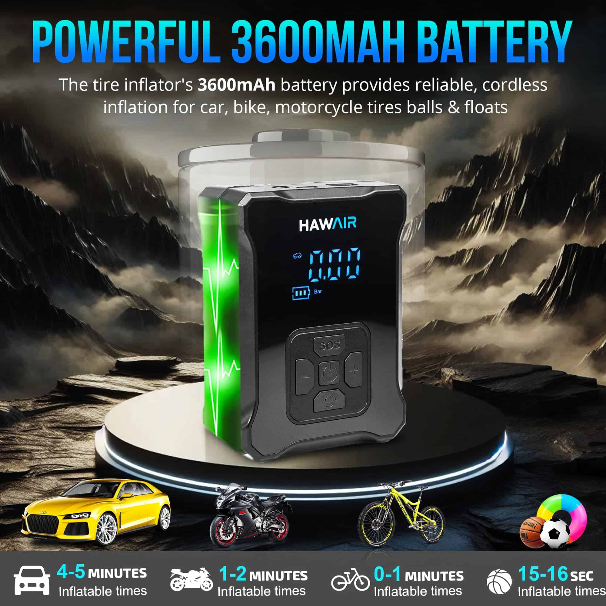 Inflador de neumáticos portátil Hawair para Neumáticos de